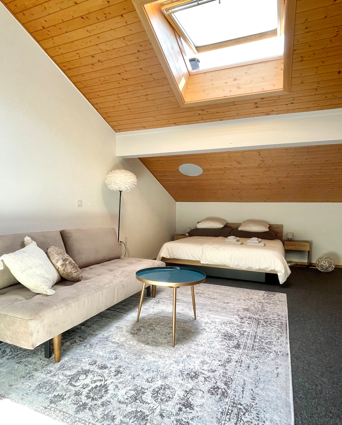 ***PAS DE FÊTES*** Au dernier étage d'une vieille maison traditionnelle au cœur de la Suisse. Près d'Interlaken et de Spiez avec une vue spectaculaire. Ce logement est unique, très calme. Il y a des transports en commun, mais je vous conseille de venir en voiture. Un parking est fourni pour vous.