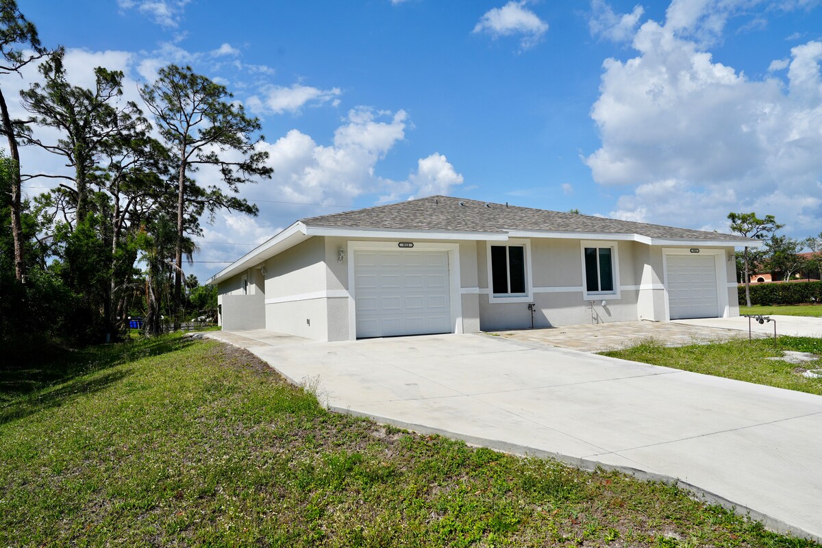 Almost Sanibel est dans un quartier paisible/calme. Bunche Beach à 2 miles, Sanibel Island à 4 miles, Fort Myers Bch à 5 miles. La maison est aménagée en duplex, avec DEUX entrées, cuisines, salons, chambres, salles de bains et buanderies COMPLÈTEMENT SÉPARÉES ET PRIVÉES pour une INTIMITÉ TOTALE. Il s'agit d'un 2 chambres avec 2 lits King Size, 1 salle de bain complète et douche avec grand salon, cuisine et Lanie. Parfait pour une famille ou 2 couples ! • À 1/2 mile des restaurants et des commerces • Wi-Fi haut débit GRATUIT et télévision par câble.