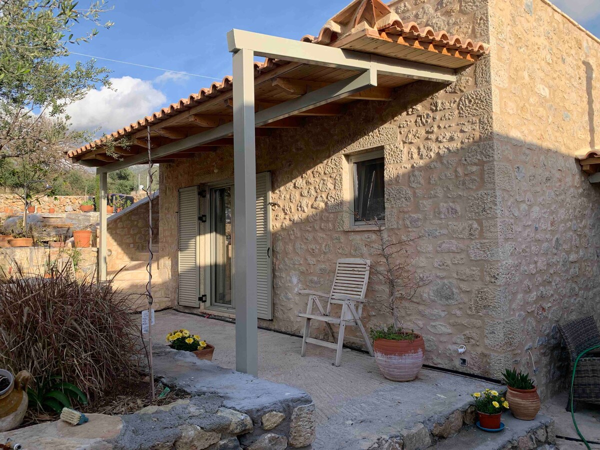 La maison d'hôtes est située au cœur du Taygetos. La maison est d'un total de 120 m ² sur deux étages avec deux grands balcons donnant sur Taygetos et la gorge de Rasina, ainsi qu'une grande cour extérieure. Au rez de chaussée, il y a la cuisine, les ontas et le salon avec une cheminée. À l'étage, il y a une chambre de deux lits et une chambre à trois lits avec cheminée. Chaque étage est muni de sa salle de bain. Vous disposez de tout le confort nécessaire pour cuisiner ou cuisiner.