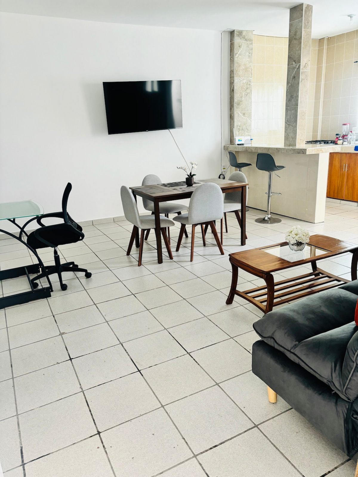 Bel appartement meublé confortable et indépendant ; situé dans un quartier sûr. Il se compose de tout le nécessaire pour être habité par une personne : chambre, cuisine et salle de bains. Avec tous les services : électricité, eau chaude et internet, inclus dans le coût du loyer.