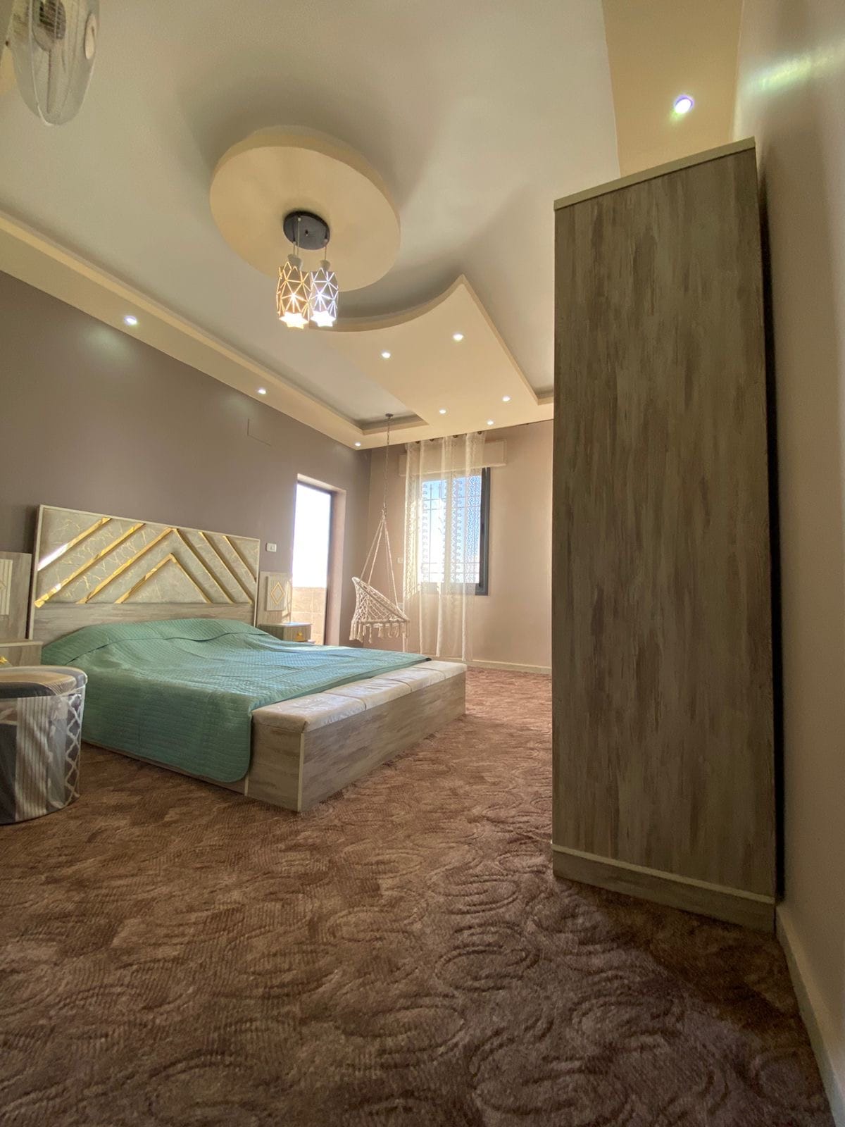 Appartement Super Deluxe Emplacement : - Proche de la rue universitaire et proche de tous les services Le premier étage de cent mètres se compose de : - 1- 2 chambres 2 - : 8*4 m de hall ouvert et salon 3- grande cuisine 4- une grande salle de bain. Composants de l'appartement 1- 2 climatiseurs 2 tonnes italiennes. 2- 2 ventilateurs Réfrigérateur à 4 yeux 5- Four à micro-ondes 48L 6-SwahWater 7-Geisser50 L Saudi 8- 2 Tub 9- 50 pouces Télévision Services d'appartement : - 1- Internet par fibre et connexion Wi-Fi. 2- Abonnez-vous à Internet TV. 3. Caméras de surveillance avec services à distance. 4- Protection de l'appartement