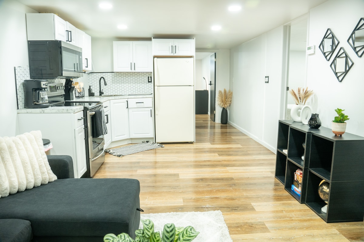 Comme avoir un autre chez-soi loin de chez soi. Entrée privée, peu ou pas d'interactions avec qui que ce soit. Appartement au sous-sol au premier étage avec chambre et pièce séparée pouvant être utilisée comme bureau pour travailler avec un ordinateur portable ou pour un invité supplémentaire. Futon inclus dans la chambre. Équipement de gym situé à l'extérieur près de l'entrée de l'unité. Cuisine, laveuse, sécheuse tous accessibles. Keurig entièrement approvisionné.