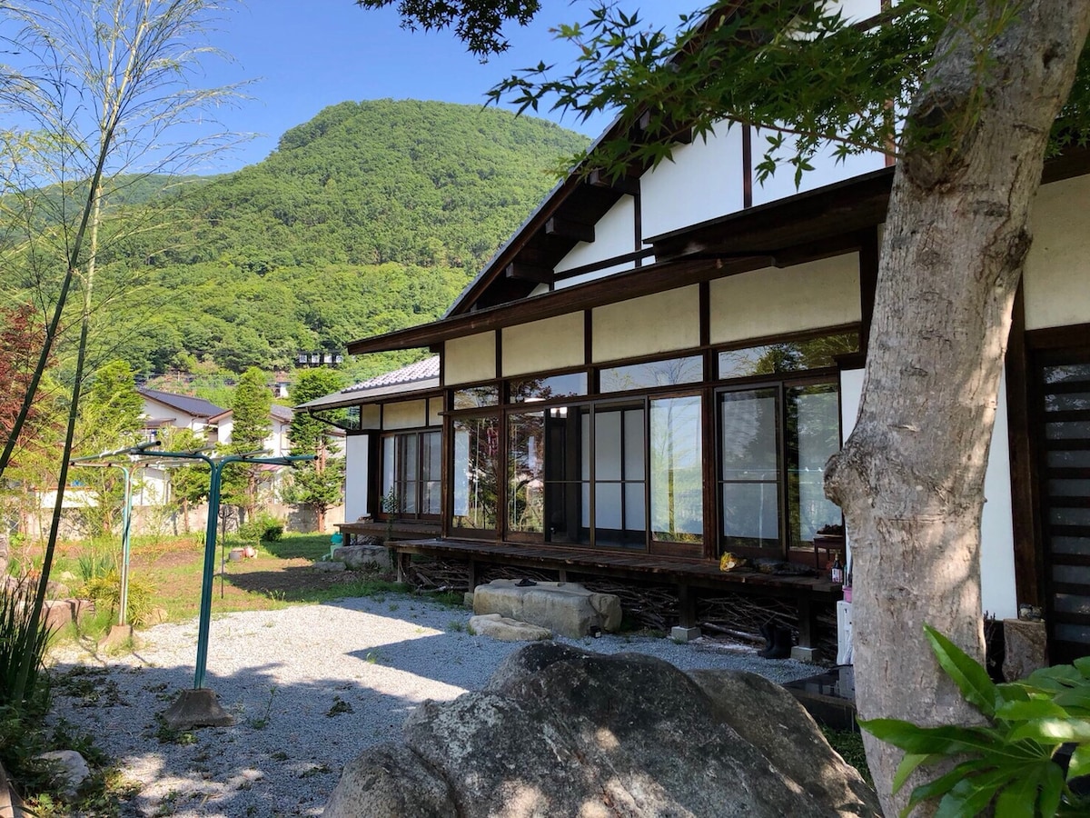Profitez d'une expérience japonaise unique dans un espace rénové et confortable tout en ressentant l'histoire d'une maison vieille de 200 ans.Limité à un groupe par jour, afin que vous puissiez profiter de votre séjour sans hésitation.Arrivée entre 15h et 18h, départ avant 10h le lendemain En avril, les fleurs de pêcher sont partout.La zone autour de l'auberge est en pleine floraison vers le milieu de l'année.Vous pourrez également profiter des cerisiers en fleurs et des pruniers en fleurs. Actuellement, nous proposons également une expérience de fabrication de houtou en hiver uniquement (réservation à l'avance requise).Le houtou à base de nouilles est moelleux et délicieux !* Veuillez nous contacter pour plus d'informations [La maison de Moshimoshi] Il s'agit d'une maison au toit de chaume rénovée construite à la fin de la période Edo.Idéalement situé au cœur du quartier de préservation du pays « Kamijo Village », il offre une vue imprenable.Profitez de la vie à la campagne comme si vous aviez voyagé dans le temps. ◆Une connexion Wi-Fi est disponible ◆En gros, vous pouvez cuisiner sans repas Gratuit : IH, réfrigérateur, micro-ondes, etc. Payant : équipement de barbecue, équipement de fabrication de nouilles soba de Nagasaki, foyer extérieur ◆ Serviettes, brosses à dents, shampoing, etc. (pas de linge de lit) Promesse Veuillez utiliser cette précieuse maison ancienne avec soin ・ Pas de flammes nues (feux d'artifice portatifs, etc. nécessitent une demande préalable) Les activités qui causent des problèmes au voisinage, comme le bruit, sont interdites (après 20h00, veuillez rester à l'intérieur) ・ Veuillez consulter les règles supplémentaires pour amener des animaux de compagnie * Exploité par l'association à but non lucratif Yamanashi Kami-nami Preservation Society dans le cadre d'activités d'entretien du paysage