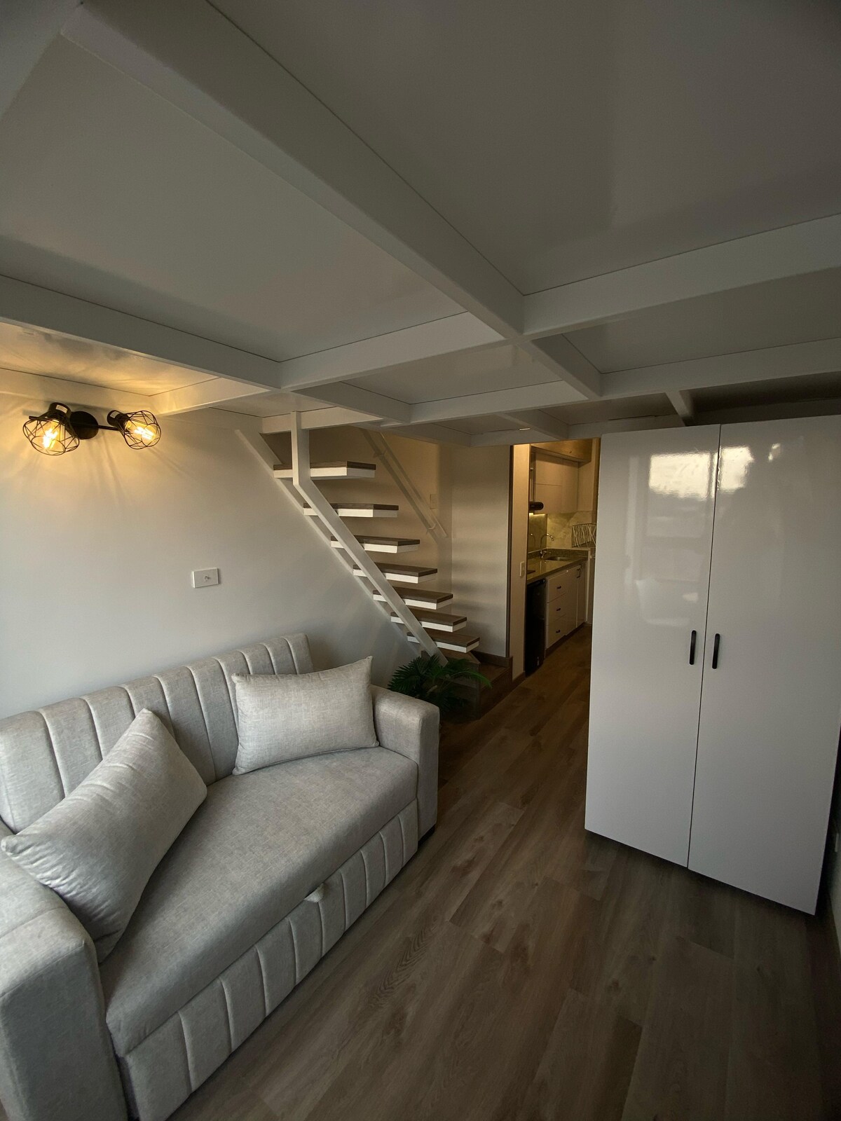 Profitez de ce loft de luxe moderne et confortable. Il offre un lit Queen, un canapé-lit, le WiFi, une Smart TV et une cuisine équipée (café inclus) Situé dans un nouveau bâtiment à quelques pas de Transmilenio, des parcs, des restaurants et du théâtre. Détendez-vous avec la vue au coucher du soleil ou travaillez dans ses espaces de coworking. Accès à une terrasse avec barbecue, un espace d'exercice et une salle de télévision. Sécurité 24h/24 et 7j/7 et parking en option. Pet-friendly. Réservez et vivez Bogotá avec style !