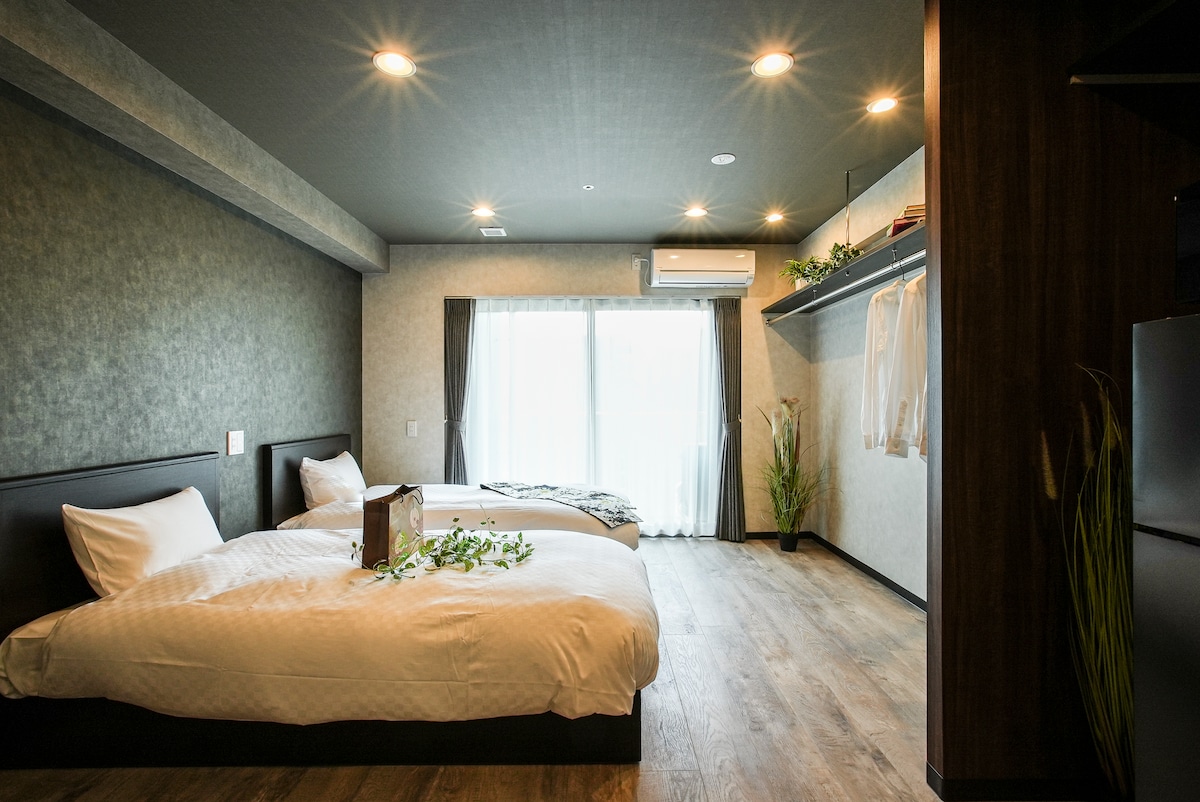 7 min Walk from Station: Karatachi Wide Twin Room