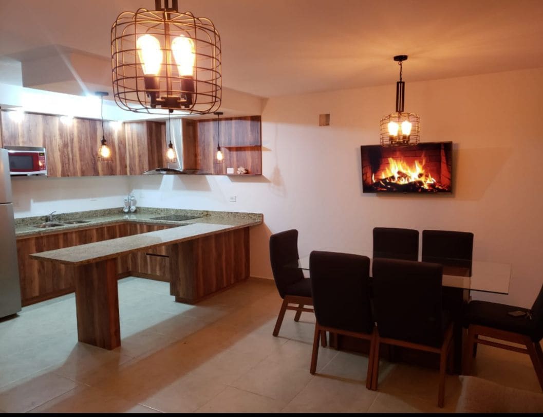 Appartement à 200 mètres de la plage, 5 minutes à pied, vous n'avez pas besoin de votre voiture. L'appartement est situé au 1er étage et dispose de : - Chambre principale avec lit Queen Size - Chambre secondaire avec lit superposé double -1 Salle de bain et 1/2 - Cuisine équipée -Salon et salle à manger -Smart Tv dans la salle -Wifi - Balcon avec vue sur la piscine - Terrasse avec vue sur la mer Aménagements : -Alberca -Palapas avec rôtissoire à gaz - Vélos - Zone d'exercice -Mini Golf -Jeux enfants -Course de volley-ball -Accès contrôlez
