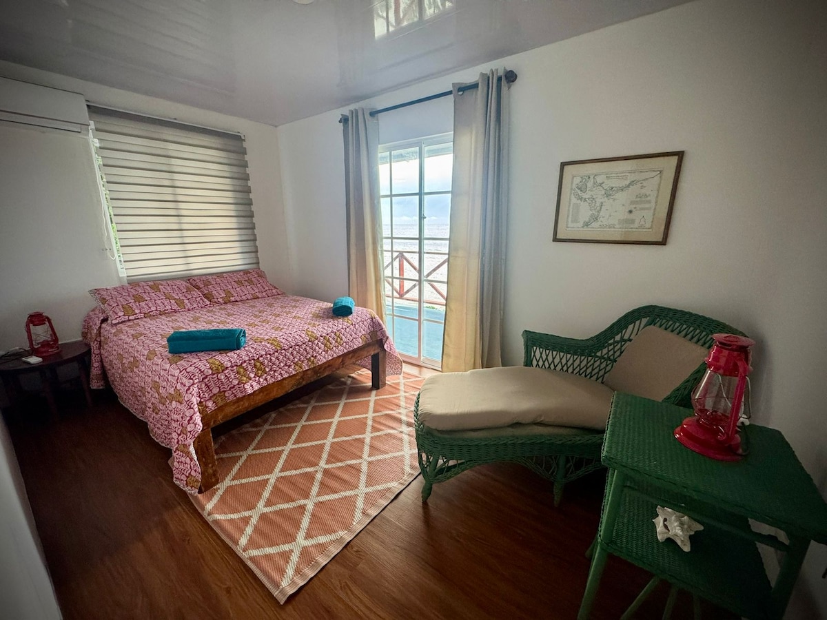 Es un bloque de 2 habitaciones privadas con un baño privado, Proa y Popa. En Freshwater Bay House, anterior hogar del Capitán Bryan, tendrás vista al atardecer en el mar. Cuentan con balcones con hamacas, baño privado y acceso a la playa. Cerca a restaurantes, markets, playas principales, centros de buceo, naturaleza y tranquilidad. Hay una cocina completa y zonas comunes para compartir con otros viajeros. Terrazas llenas de hamacas, silencio, brisa y desayuno de productos de temporada.