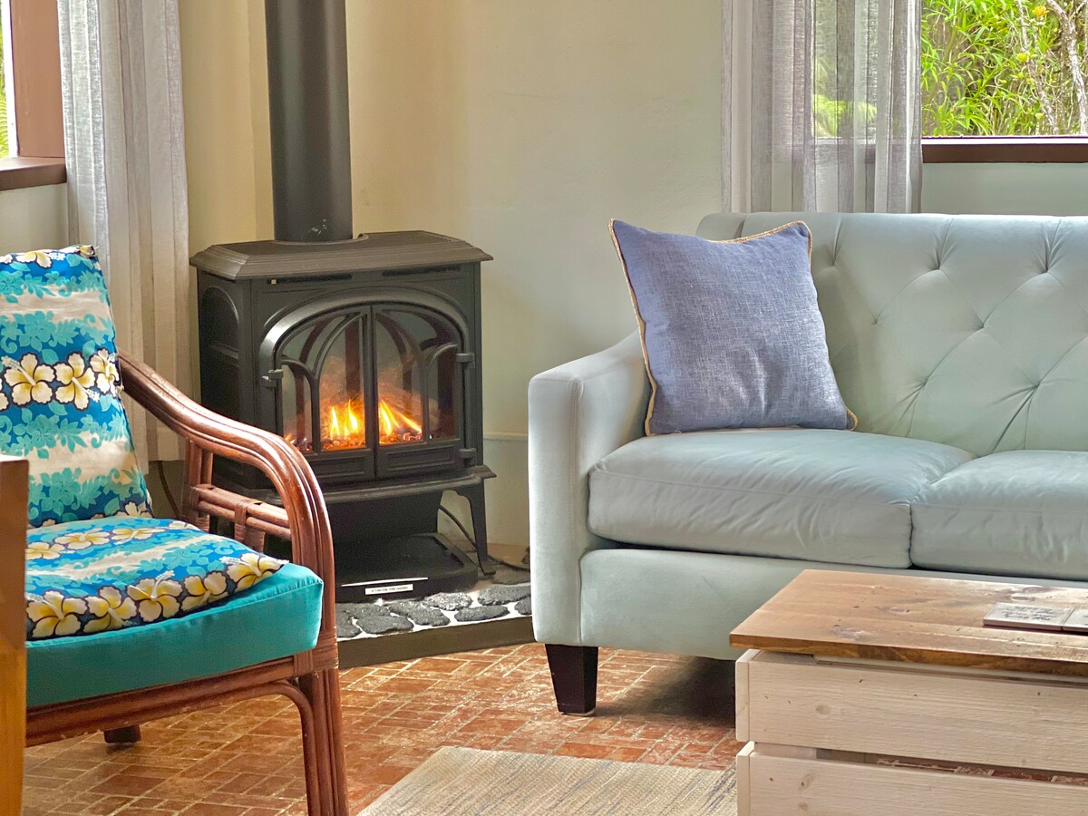 Bonne nouvelle, j'ai amélioré mon WiFi pour en faire le meilleur de notre région. Je sais maintenant que les besoins de nos clients ont changé et qu'un bon WiFi est indispensable. Nous avons également ajouté une terrasse couverte avec un barbecue pour votre confort. Le Volcano Hidden Cottage est un emplacement centralisé facilitant l'exploration du côté est de Big Island. Très privé, plein de romantisme, cuisine, cheminée et beaucoup de fenêtres donnant sur la forêt tropicale.