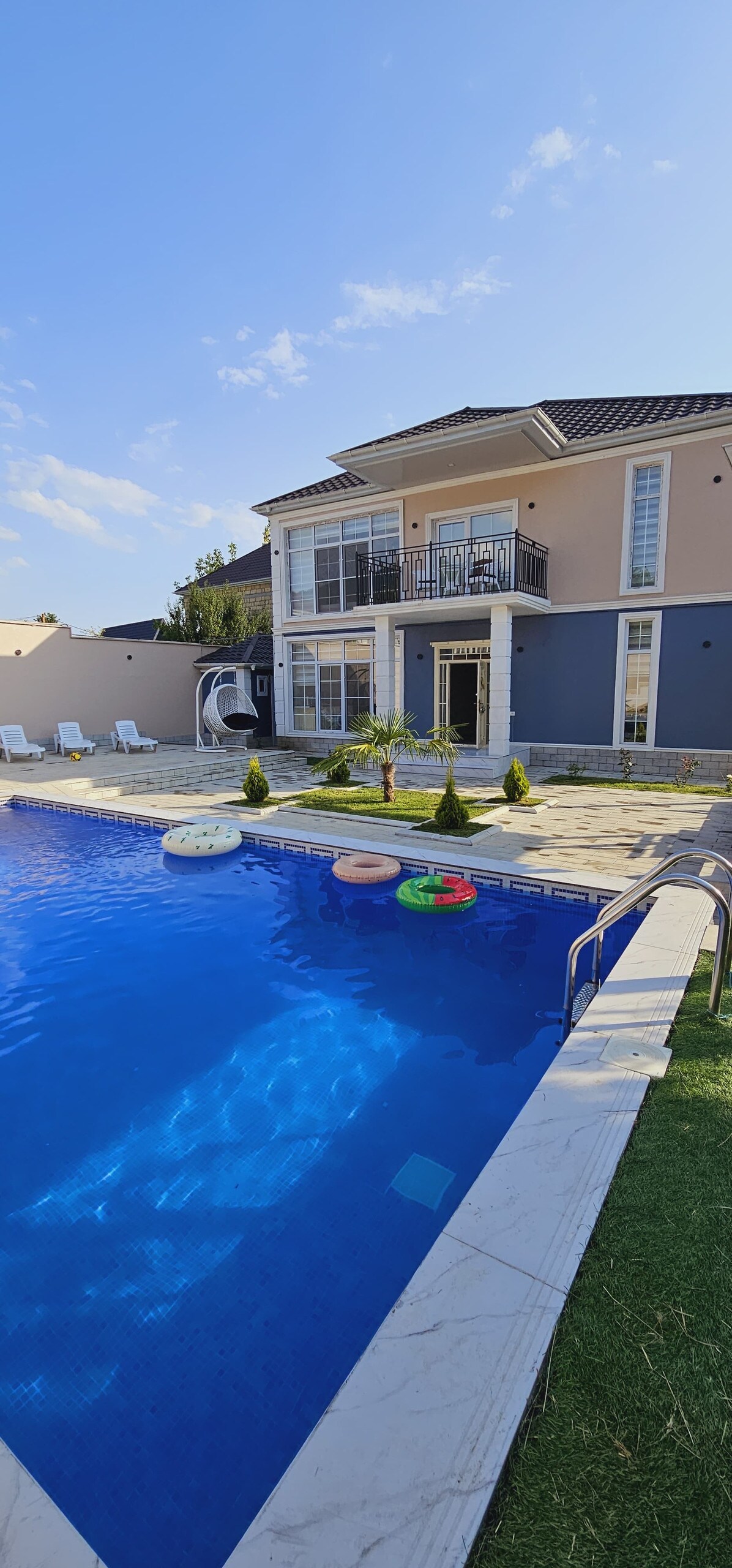 Détendez-vous en famille dans ce logement tranquille. La villa est très spacieuse, soignée, piscine intérieure, jacuzzi, sauna, à côté de restaurants, marché à côté, auvent, Tufandag, lunapark est le plus proche, la maison a un barbecue, samavar,
