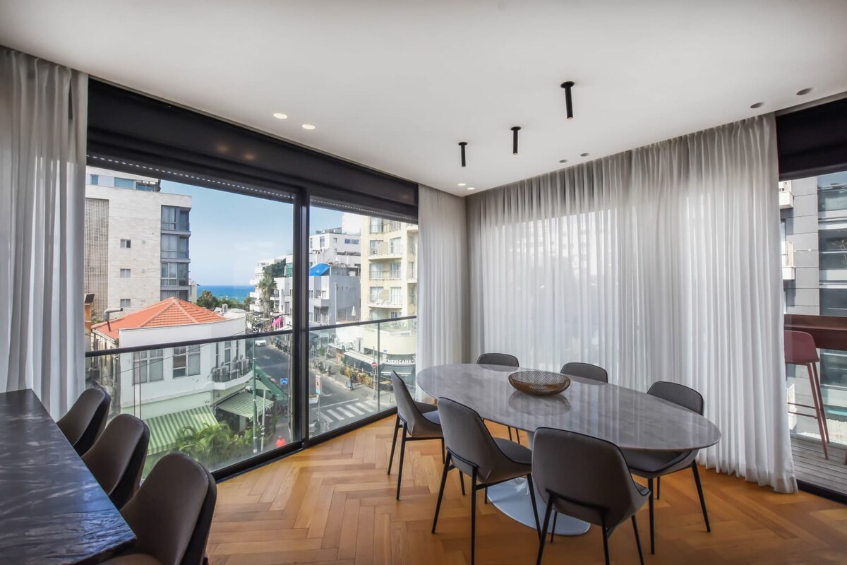 Situé dans un tout nouveau bâtiment sur la rue Ben Yehuda, cet appartement moderne de 2 chambres et 2 salles de bain offre un séjour élégant à Tel Aviv pour 4 personnes maximum. Avec deux balcons privés, une chambre Mamad sécurisée et un design propre et moderne, c'est le pied à terre idéal pour les couples ou les petits groupes qui veulent du confort, de l'espace et un accès au meilleur de la ville.