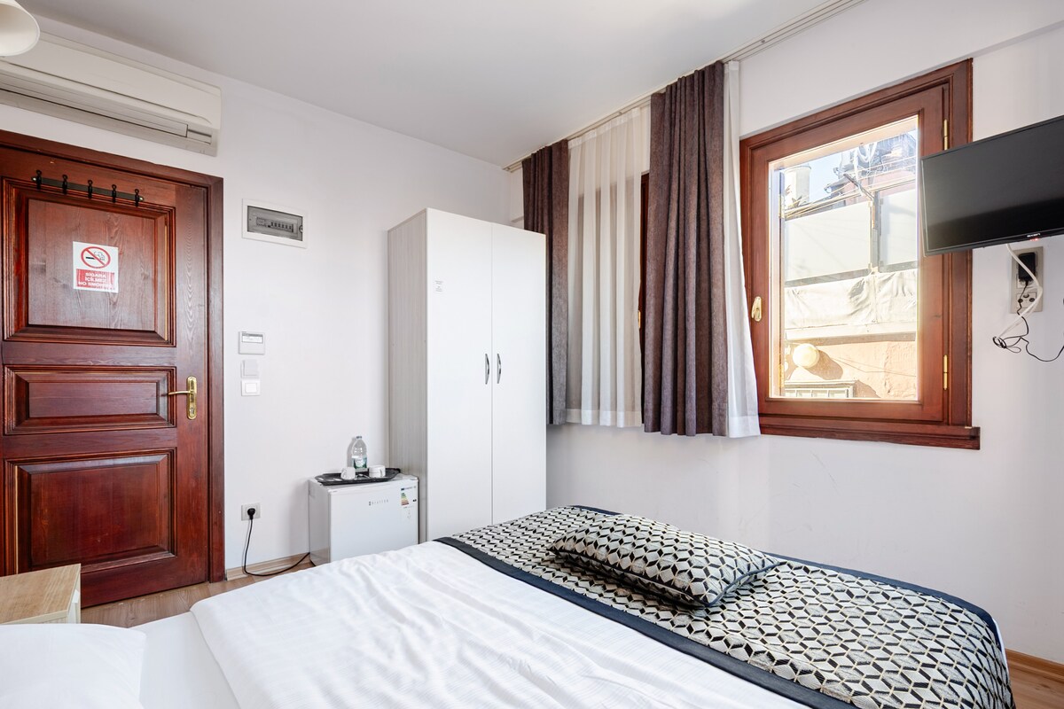 ✨ Chambre Istanbul – Le classique rencontre le moderne Séjournez au cœur de Sultanahmet, à quelques pas de la Mosquée bleue et de Sainte-Sophie. Chaque chambre allie design moderne et élégance classique, offrant confort et expérience unique à Istanbul. Profitez de linge de lit de haute qualité, de la climatisation, d'une connexion Wi-Fi gratuite et d'une atmosphère élégante et confortable. Parfait pour les couples, les voyageurs en solo ou les petits groupes explorant la péninsule historique.