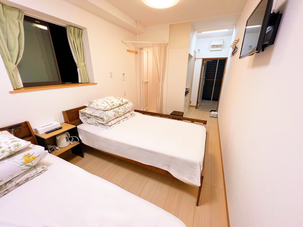 Il s'agit d'une chambre au 4e étage dans un appartement de 8 étages avec ascenseur. Peut accueillir jusqu'à 4 personnes (jusqu'à 3 adultes, peut accueillir jusqu'à 4 personnes, y compris les enfants.Veuillez noter la configuration des lits ci-dessous) Le bâtiment dispose d'un total de 8 chambres 101-801, et une seule chambre est faite au rez-de-chaussée.Si vous souhaitez avoir plusieurs chambres ou des chambres à d'autres étages, vous pouvez réserver à partir d'une autre annonce. Vous pouvez profiter d'autres applications vidéo Netflix sur le téléviseur comme suit. Il est équipé d'un moniteur externe pour PC et d'une connexion Wi-Fi haut débit via une communication optique pour permettre le travail à distance (comme décrit ci-dessous, il y a un moniteur TV de 24 pouces et un moniteur PC dédié séparé à louer.Le câble HDMI est connecté à la télévision dans la chambre) (Installations à proximité) Adjacent : parking payant disponible (15 minutes 200 yens, 6-12 voitures 1400 yens par jour), laverie automatique disponible À quelques minutes à pied : il y a plusieurs magasins et supermarchés À 7 minutes à pied : Kamata Onsen (Accès) À 5 minutes à pied de la gare de Keikyu-Kamata et à 14 minutes à pied de la gare JR Kamata Le train est idéalement situé à Tokyo et Yokohama Aéroport de Haneda→ Keikyu-Kamata 8 minutes Keikyu-Kamata →Shinagawa 8 min Keikyu-Kamata →Yokohama 10 min