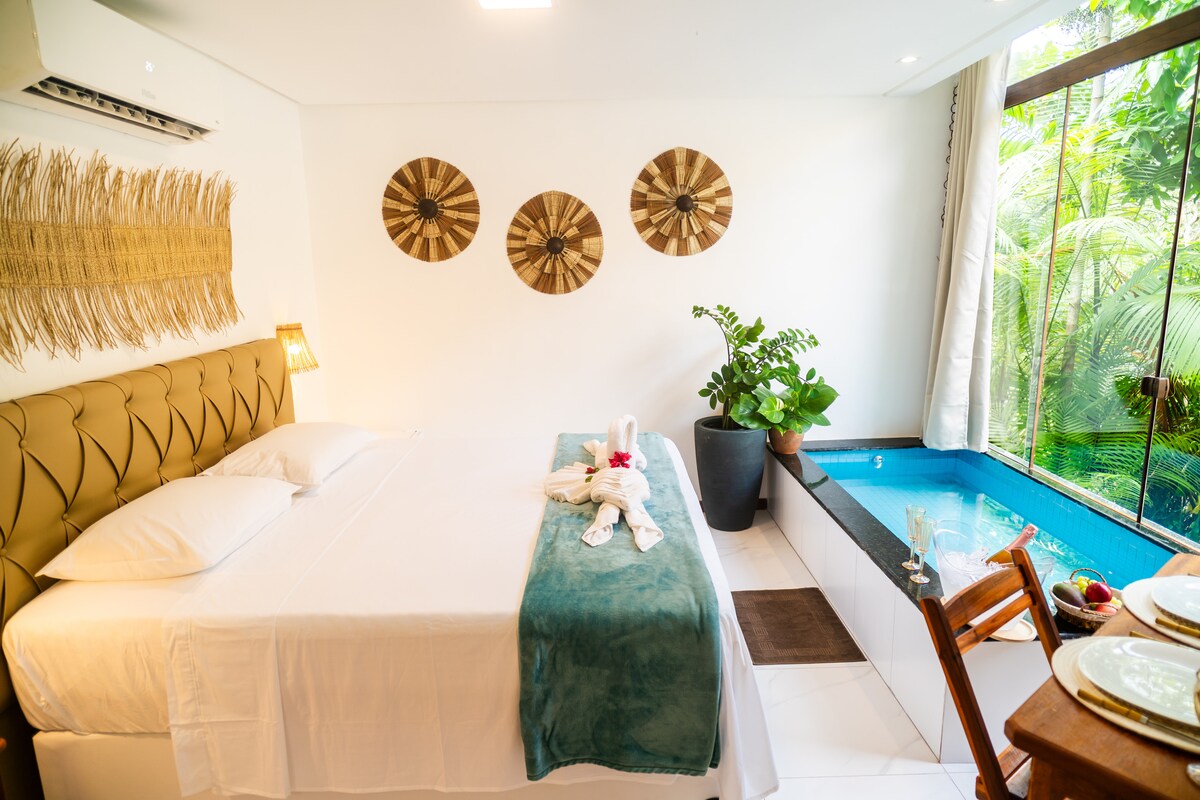 Villa Botanic Garden, est un complexe avec des maisons immergées au milieu de la nature, entourées de verdure et avec un paysage unique de mangrove, végétation luxuriante et contact avec la vie locale sont notre différentiel. Cette annonce est pour la suite Baronesa, une suite compacte mais très charmante pour une ou même deux personnes. C'est une suite avec climatisation, qui dispose d'une baignoire IMMERSION privée et fait partie du complexe Botanic Garden, qui offre un bel espace commun, avec une piscine et un espace gastronomique.