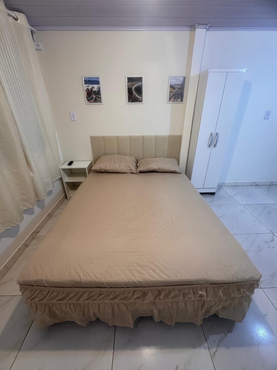 Lugar aconchegante, a 2min do mar. Estacionamento não demarcado (1 carro médio ex: Tracker), não é gaveta. Kit praia: cooler, 2 cadeiras, guarda-sol. Cozinha equipada com utensílios, purificador de água, geladeira, forno, fogão de indução, micro-ondas, ferro, chaleira elétrica. Cozinha integrada com a sala com smart TV e sofá cama King 1 quarto com 1 Cama queen, 2 colchões de solteiro e mini berço opcional 1 banheiro completo Cortinas blackout, ar cond. frio na sala e quarto, aquecedor elétrico