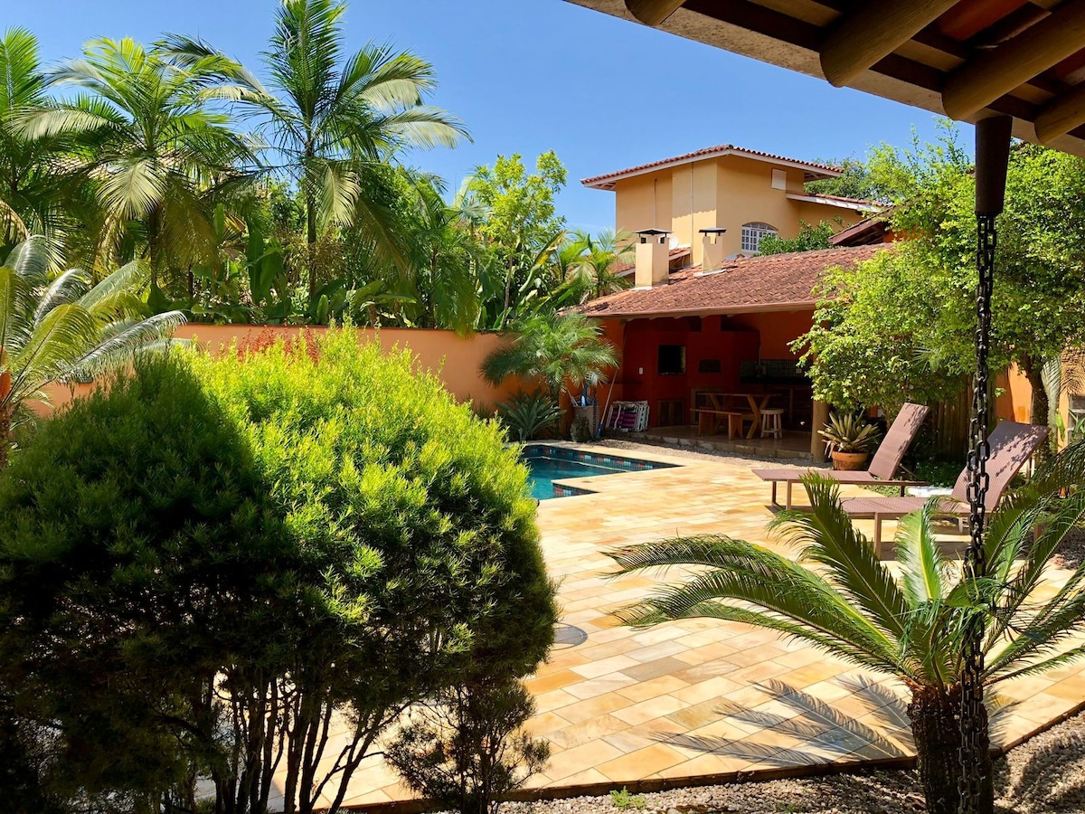 🏝️ Un refuge tropical à Prumirim La maison parfaite pour les familles qui veulent profiter de la plage et de la piscine avec confort et tranquillité à quelques minutes de la plage, permettant des journées pratiques sans stress et sans déplacement. Située dans une rue calme et boisée de la subdivision Aldeias do Prumirim, cette maison confortable est entourée par l'exubérance de la forêt atlantique, qui surplombe pratiquement la propriété. La conception orientée vers le nord assure une maison ensoleillée toute la journée.