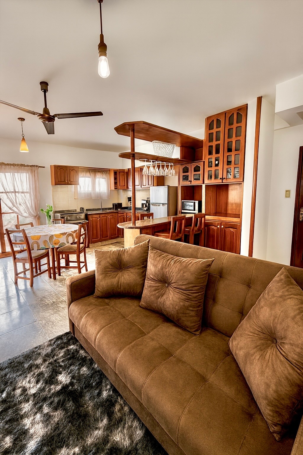 Votre maison temporaire, avec tout le confort ! Cet appartement allie lumière naturelle, design minimaliste et détails accueillants pour que vous vous sentiez comme chez vous. Vous profiterez du balcon avec vue sur le vert, d'un espace de travail confortable et d'une cuisine entièrement équipée. En outre, le bâtiment propose une piscine et un parking privé. Situé à quelques mètres de la plage, du centre civique et de la zone centrale d'Encarnación, il est idéal pour tout type de séjour.