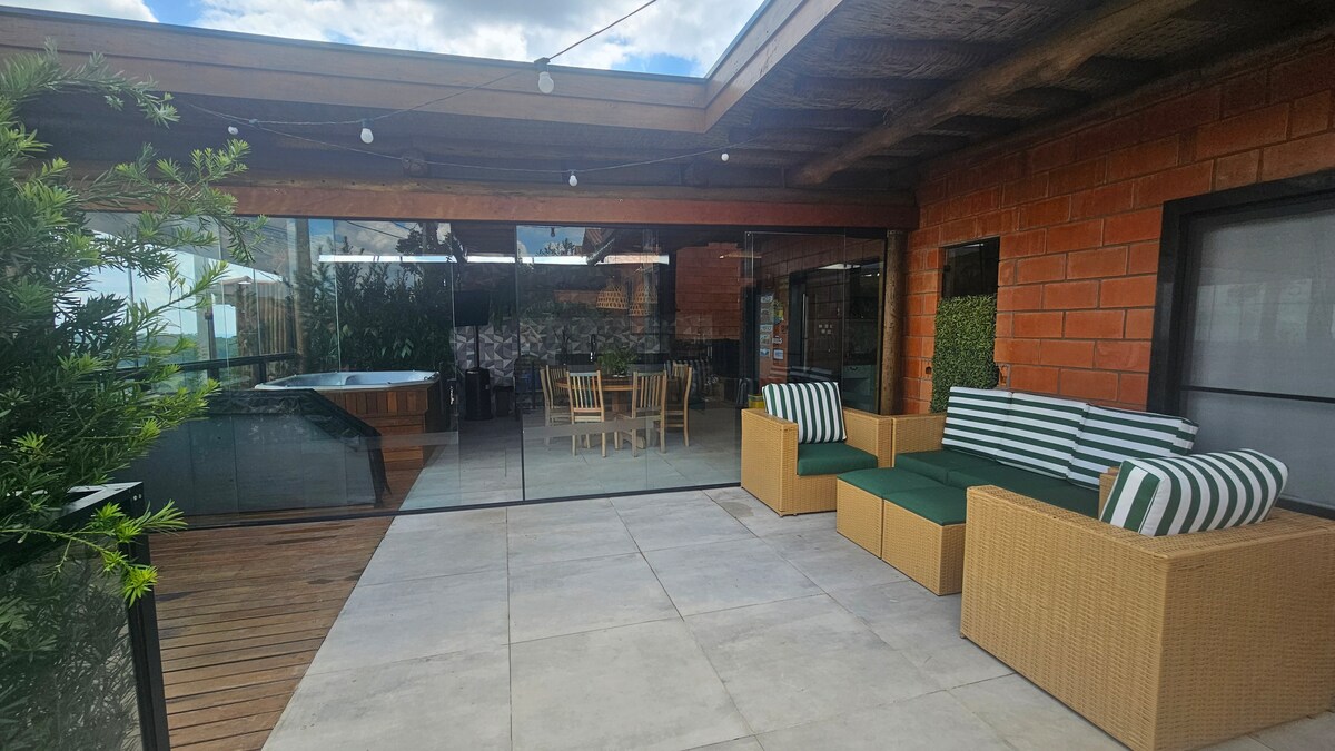 ***NE PAS PAYER DE FRAIS AIRBNB*** Découvrez Recanto dos Esquilos, une charmante ferme à São Roque, parfaite pour les familles et les amis. Profitez de vastes espaces de loisirs, y compris des courts de tennis et de beach tennis, d'une piscine et bien plus encore, le tout dans une copropriété sécurisée. Avec une capacité allant jusqu'à 23 personnes, nous offrons confort et divertissement pour tous les âges. Détendez-vous en pleine nature et créez des souvenirs inoubliables !