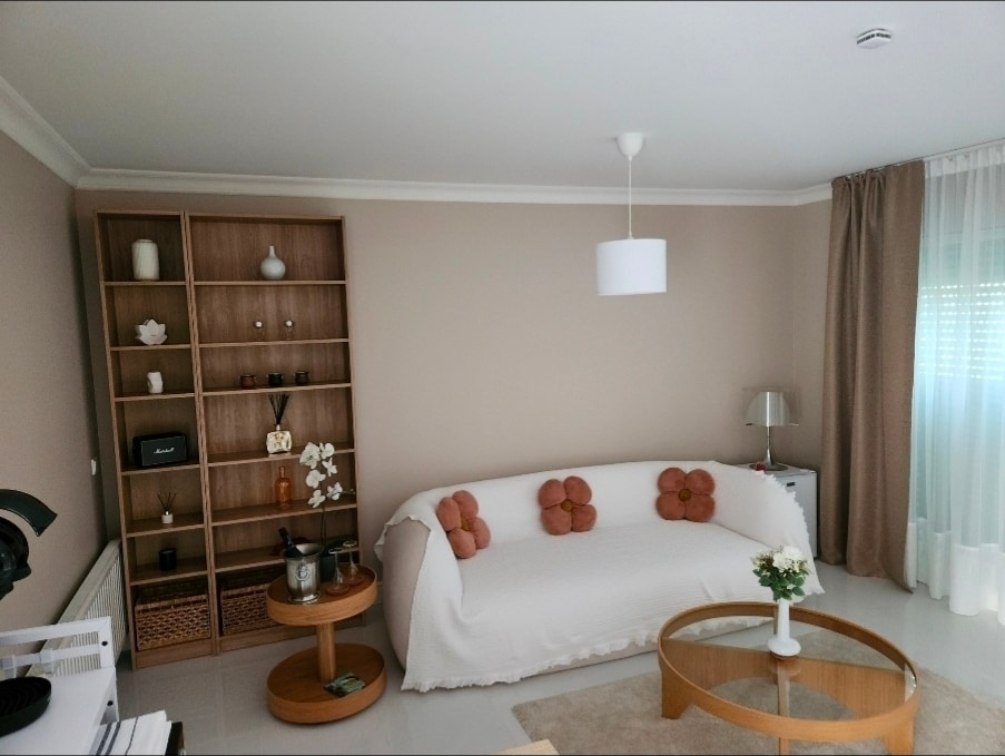Eine stilvoll eingerichtete Wohnung im 2.Stock unseres Apartmenthauses: 2 Schlafzimmer mit jeweils einem Doppelbett, Badezimmer mit Dusche, großes Wohnzimmer mit Schlafcouch. Ein Essbereich für 6 Personen und eine voll ausgestattete Küche. Inklusive WLAN, SmartTV. Ein KOSTENLOSer öffentlicher Parkplatz neben dem Haus. 15 Minuten mit dem Auto von der Hauptstadt. Eine Bushaltestelle befindet sich direkt vor dem Haus. Ich bin als Gastgeber sehr gut erreichbar da ich im gleichen Gebäude wohne.