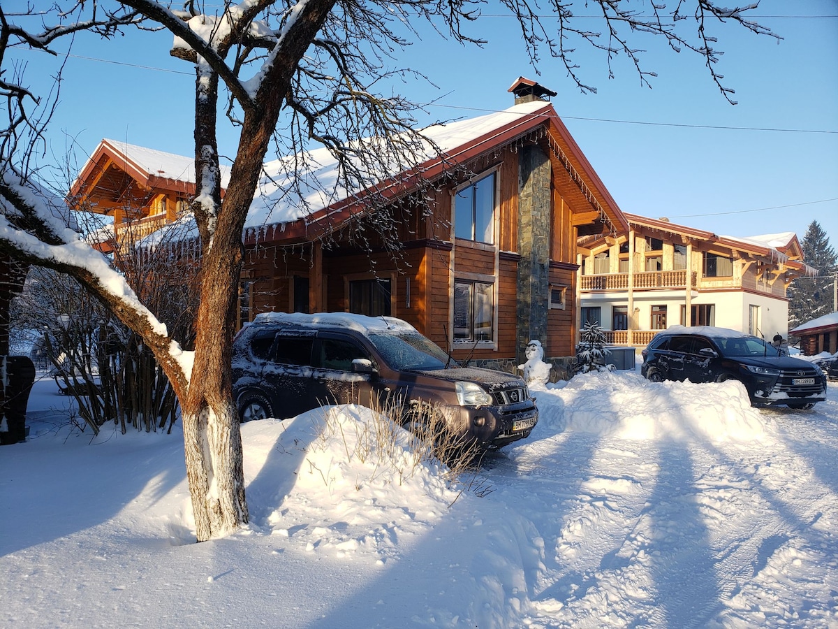 Les locaux sont situés près de la route centrale de Bukovel. Il dispose d'une cuisine séparée (la cuisine dispose d'un réfrigérateur, d'un lave-vaisselle et d'une cuisinière à induction), de deux chambres avec lits doubles et téléviseurs connectés au wi-fi, les chambres disposent de commodes pour les vêtements. Il y a aussi un sauna et une salle de douche et des toilettes séparées.