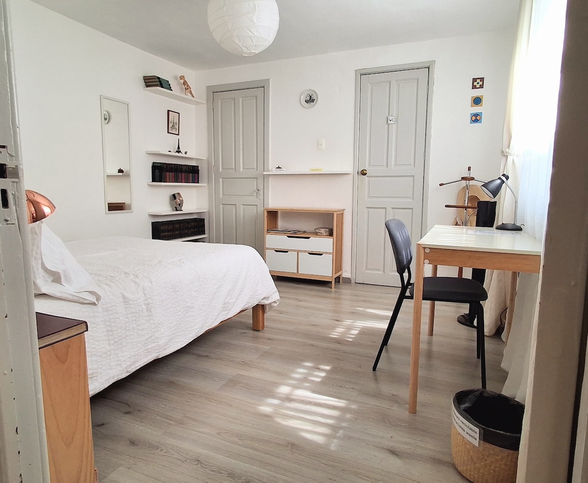 Il s'agit d'un appartement de 57 mètres carrés avec de très hauts plafonds en briques, un grand salon et un coin repas avec beaucoup de lumière. Vous y trouverez des meubles chics authentiques du milieu du siècle et plusieurs œuvres d'art. L'appartement dispose d'une chambre privée avec lit queen size, placard et salle de bains et d'une cuisine séparée avec des fournitures. Il dispose également de deux petits patios intérieurs pour la lumière et la ventilation. Beaucoup de détails architecturaux originaux de 1940 comme les planchers, les murs en briques, les plafonds et les cadres de fenêtres ont été conservés dans la restauration. Le projet a récemment été présenté dans Architectural Digest Mexico et a remporté plusieurs prix d'architecture importants : Architecture Masterprize et NoldiSchreck. Les voyageurs peuvent utiliser tout l'appartement. Vous pouvez également passer du temps dans le patio intérieur de l'appartement et dans le hall du premier étage. Il y a également une buanderie avec lave-linge et sèche-linge que vous pouvez utiliser à côté du garage. Santa María La Ribera est un quartier historique du XIXe siècle. Promenez-vous dans le parc Alameda en face, puis visitez le musée de géologie à proximité. Ici, admirez les fossiles de mammouths et de dinosaures, ainsi que des peintures du célèbre maître mexicain Jose María Velasco. Vous trouverez de nombreuses options de transports en commun, notamment le métro, le métrobus (ligne directe vers l'aéroport et le centre historique), le train, le bus et le système de vélos publics (ecobici). La ligne de métrobus 4 nord est une liaison directe entre l'aéroport T1 et T2 et Buenavista et retour. Prend environ 45 min. 30 pesos/personne, une Metrocard rechargeable est nécessaire. Moyen sûr, rapide et direct depuis et vers l'aéroport.