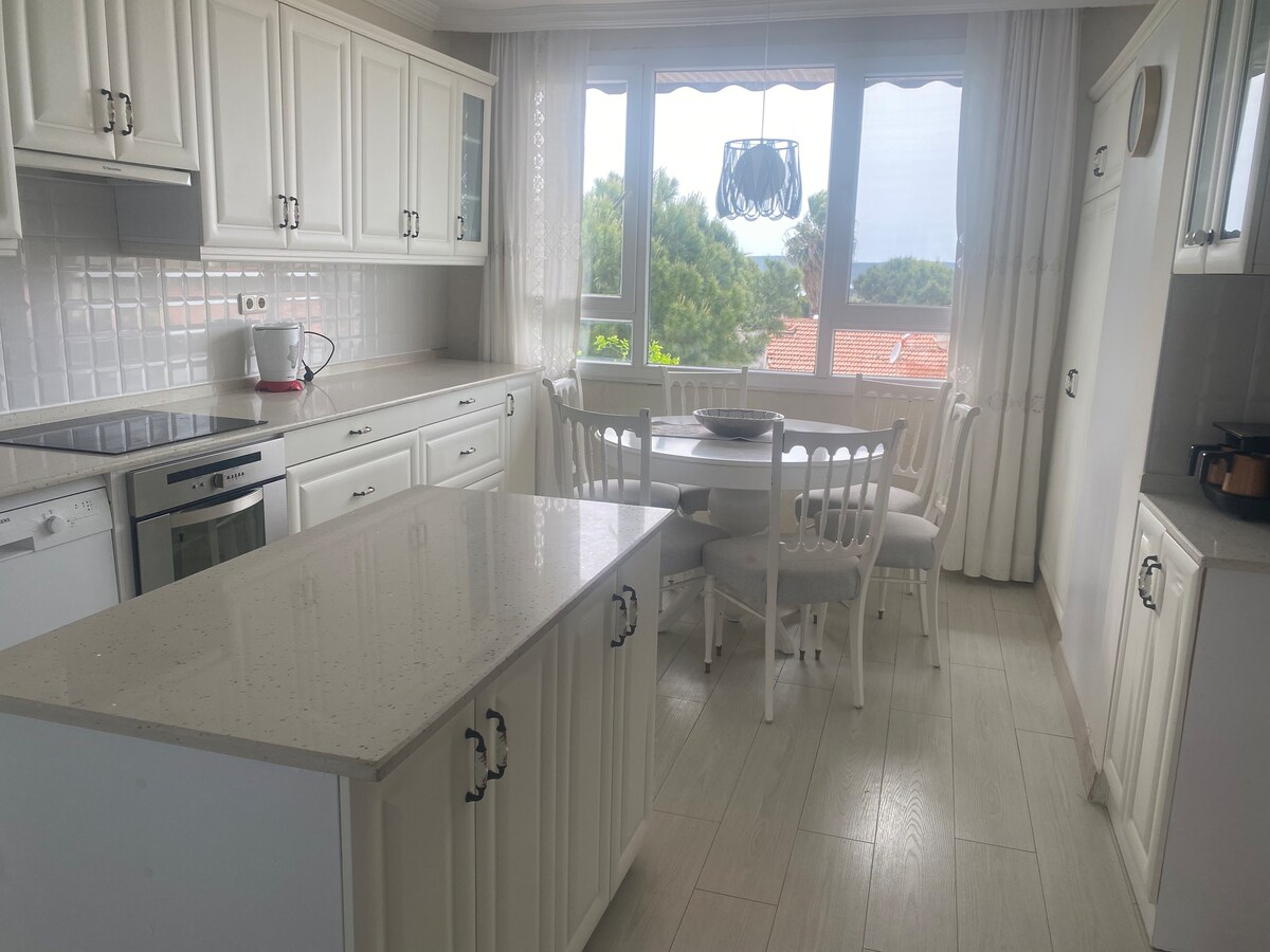 Notre maison en pierre en bord de mer vous permet de vous réveiller avec une vue sur la mer et le son apaisant des vagues. Profitez de votre café du matin ou du coucher du soleil sur la terrasse spacieuse. Parfaite pour découvrir le mode de vie côtier et la gastronomie réputée d’Urla, la maison se trouve à seulement quelques minutes en voiture d’Urla İskele, qui propose d’excellents restaurants et cafés. Avec ses espaces de vie généreux et ses quatre chambres, il est idéal pour les familles et les groupes d’amis.