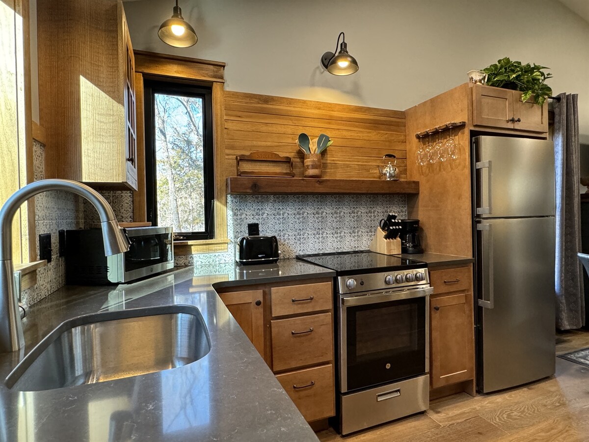 Profitez de cette belle cabane de 16x40 avec un nouveau matelas taille Queen en mousse à mémoire de forme Nectar, une kitchenette avec réfrigérateur, micro-ondes, four grille-pain, plaque chauffante et cafetière Keurig avec dosettes. Plongez dans la baignoire à remous chauffée sans réservoir de 92 gallons et profitez des attractions à proximité telles que le Havisham Bourbon Bar, le Peach Barn, les vignobles Alto et le vignoble Von Jacob. Visitez l'Iron Wisk à Cobden avant de partir en randonnée sur l'une des dizaines de sentiers de la forêt nationale de Shawnee ou du parc d'État de Giant City.