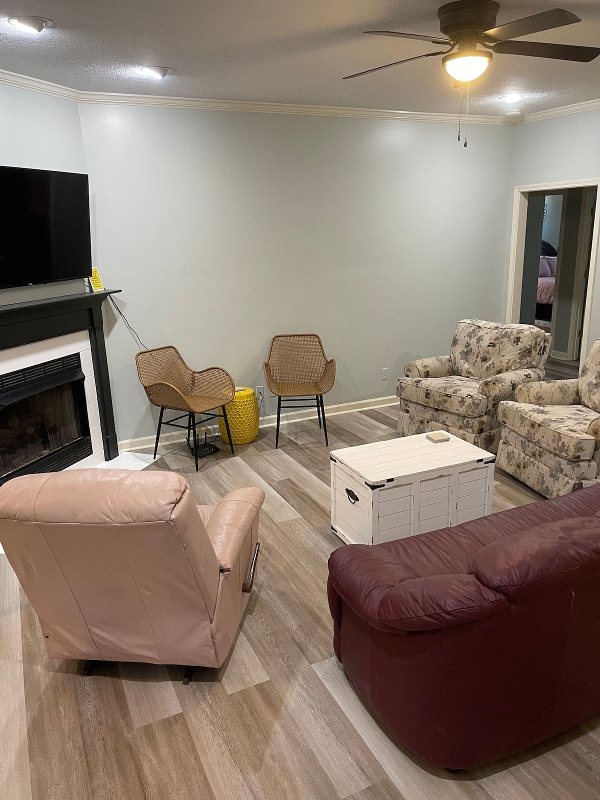 Maison en briques récemment rénovée de 4 chambres et 2 salles de bain pouvant accueillir 10 personnes. Située à seulement un mile de l'I40. Cette maison est située dans une rue calme de Cove avec une grande cour arrière clôturée. Dispose d'une jolie véranda fermée pour vos amis à fourrure, ou d'un joli petit coin lecture pour déguster votre café du matin. Cette maison est située à proximité de tout ce dont vous avez besoin pendant votre séjour. Elle est à 2 miles de tout magasin ou restaurant. Profitez de la diffusion en continu de vos émissions ou films préférés à partir de 4 téléviseurs intelligents dans la maison.