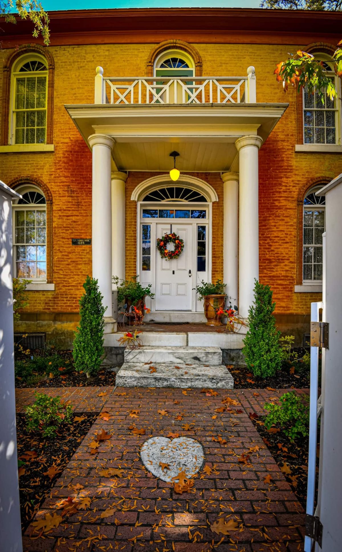 Originally constructed in 1861, the historic B.F. Dowell house has been beautifully revived. Situated within walking distance of downtown, the home provides guests with easy access to the towns charming cultural fixtures as well as a variety of quaint stores. The market across the street may help guests utilize the homes large, well-equipped kitchen. Full baths adjoin each bedroom, an additional bathroom adjoins a laundry room. The homes porch opens to a patio that accompanies a spacious lawn.