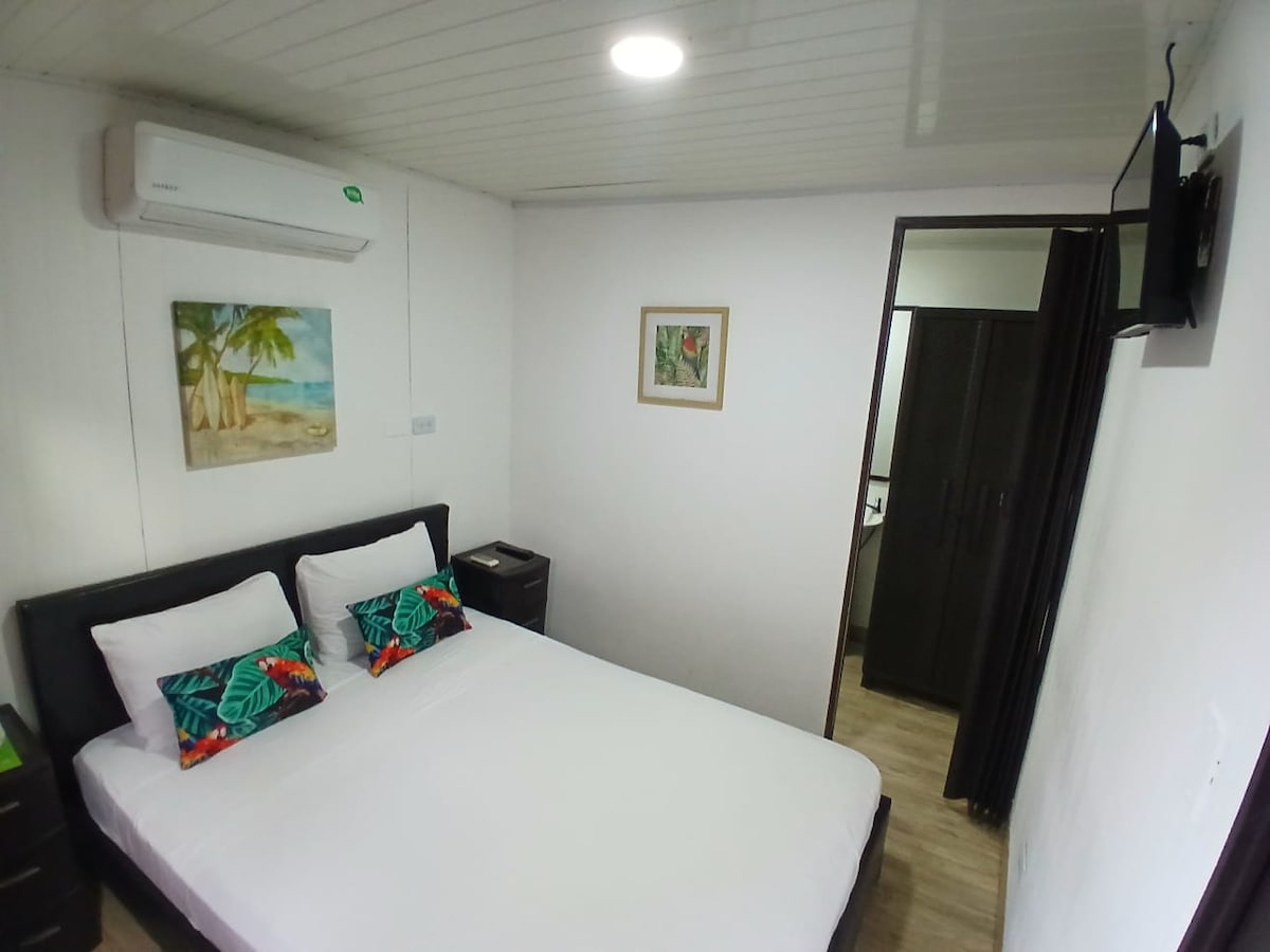 Bel appartement de 2 chambres face à la mer à Jacó. Incroyable vue sur la mer et accès direct à la plage. Climatisation, télévision, immense balcon, parking Wi-Fi dans les espaces communs, cuisine semi-équipée salle de bain privée piscine partagée et fait partie d'Aloha Jaco donc vous aurez accès à un délicieux petit déjeuner gratuit tous les jours de votre séjour et dans le restaurant nous avons des plats variés et délicieux. Prix pour deux adultes, mais il a une capacité allant jusqu'à 4 adultes payant les adultes supplémentaires.