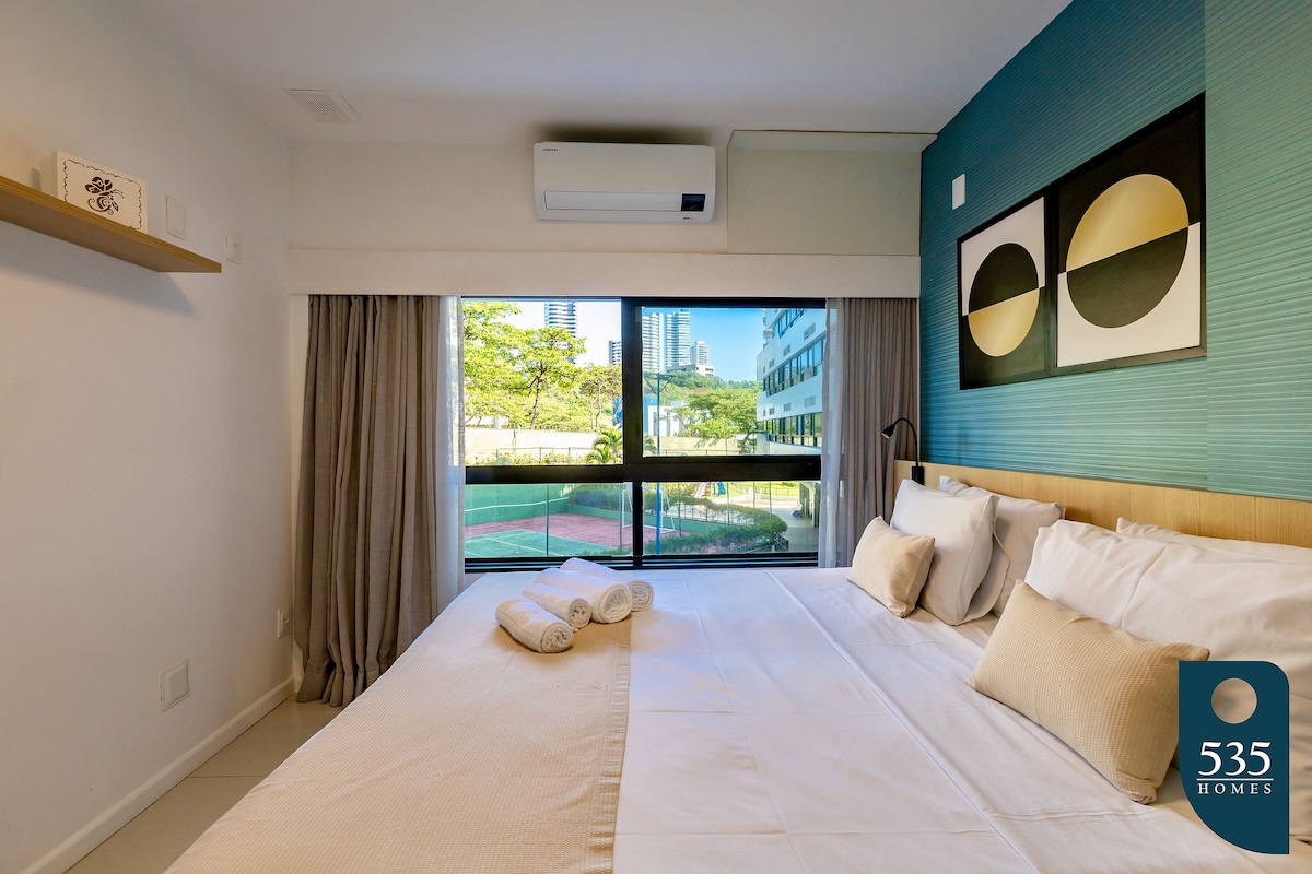 Accommodates 2 guests. Ocean view, in the best location for Carnival, with an outstanding view of the entire Oceanic Avenue all the way to Barra Lighthouse. Modern building featuring a swimming pool, gym, Seven Wonders Restaurant on the ground floor serving a delicious and highly sought-after breakfast (paid separately), mini-market, 24-hour front desk, and stunning architecture. Staying in this unit grants free access to the Blue Praia Bar, one of the best beach clubs in Salvador.