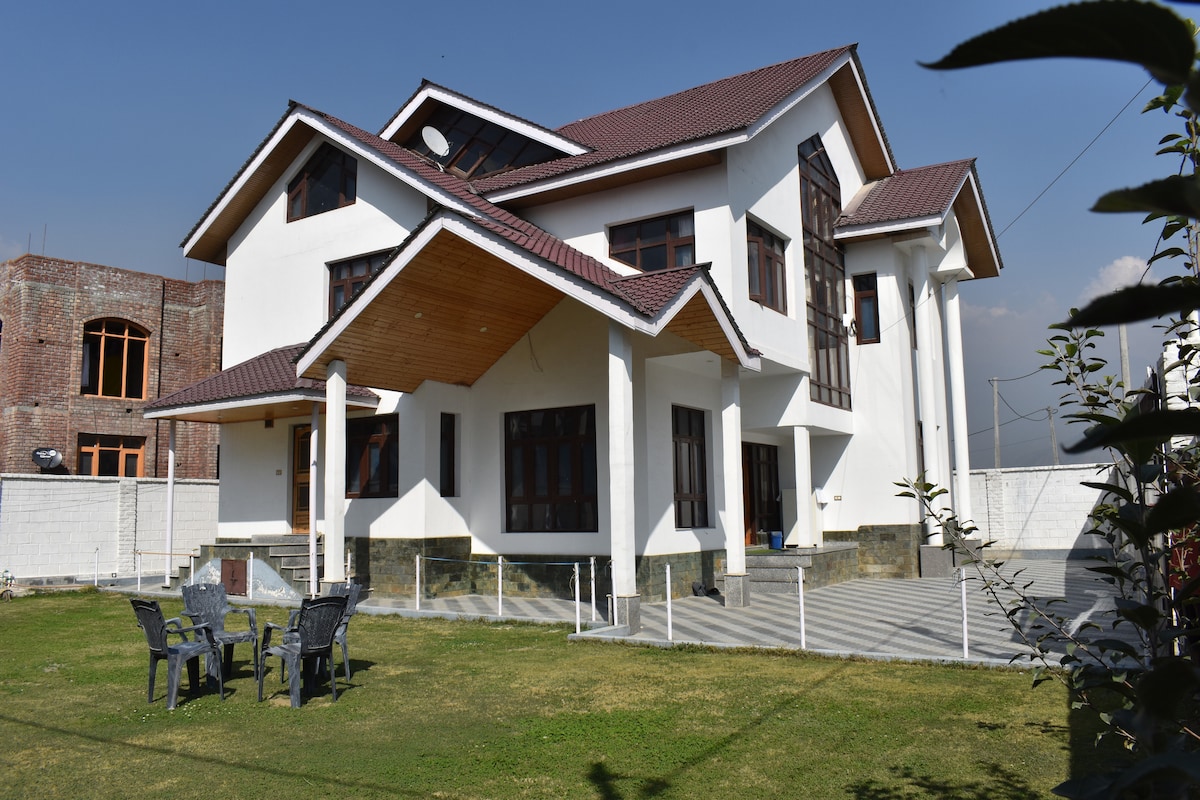 This Lake View Villa is just walking distance from Kashmir’s famous Dal Lake and has view of mountains. Newly built spacious and stylish villa is surrounded by beautiful garden with plum trees. Its a peaceful and centrally-located place for guest to enjoy a lovely holiday. 15 minutes from busy shopping centre, restraurant and cafe’s. 5 min from famous Mughal Gardens. Large parking and outdoor space. Attendant available 24/7 for providing any sort of help. Breakfast/Dinner available on request.