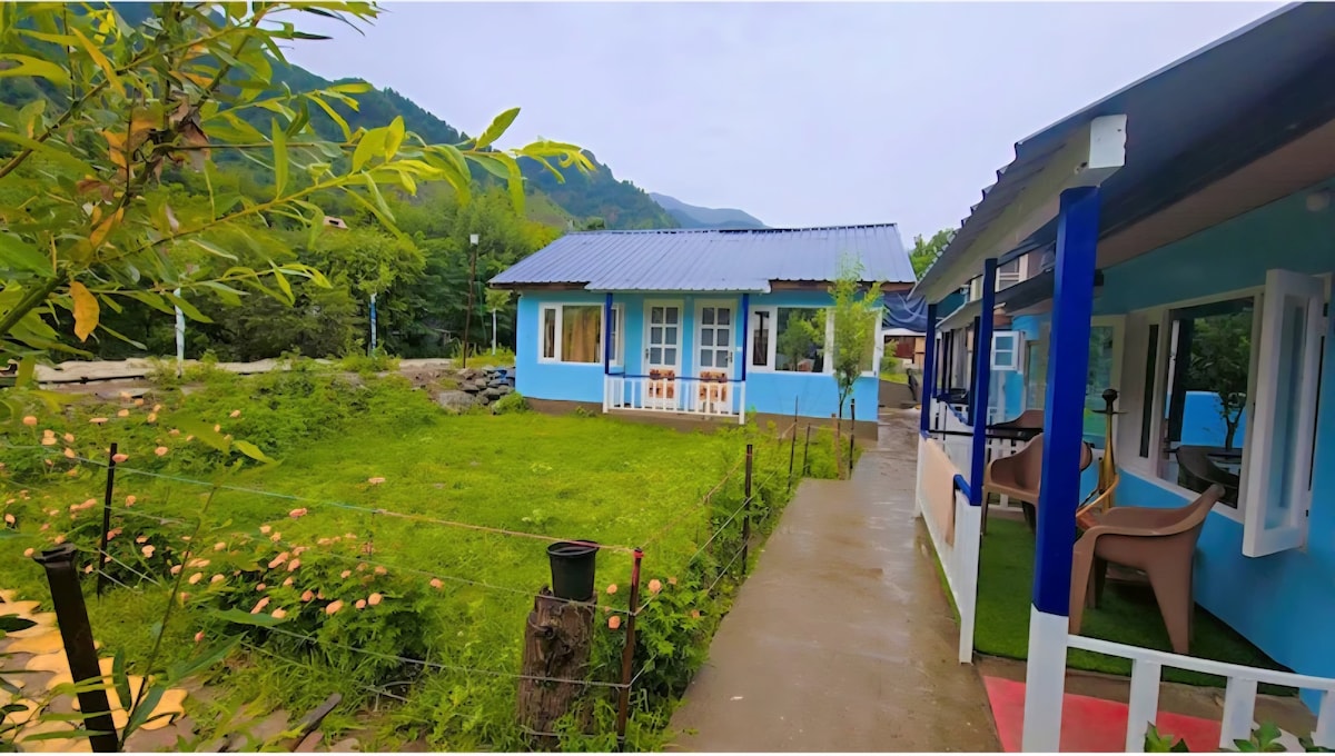 Profitez d'une escapade familiale paisible dans nos élégants cottages de luxe à Upper Neelum, dans le district de Kéran au Cachemire. Cette propriété exclusive comprend 4 cottages en bois magnifiquement conçus, idéaux pour les groupes allant jusqu'à 22 voyageurs. Réveillez-vous avec une vue imprenable sur la rivière Neelum et le lac LOC, détendez-vous dans des intérieurs confortables et profitez d'équipements modernes : Wi-Fi haut débit, eau chaude 24 h/24, 7 j/7, service en chambre, groupe électrogène de secours, climatisation et parking sécurisé gratuit. Un mélange parfait de nature, de confort et d'intimité pour un séjour inoubliable.