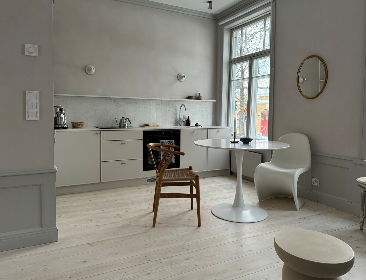 Deux-pièces entièrement rénové et fonctionnel dans une maison en pierre d'ambiance des années 50 avec un emplacement privilégié. À seulement 300 m de la gare. Théâtre, usine de tissage et musée d'art à 150-450 m. Épicerie à 300 m, marché à 800 m et centre commercial Goodman à 1,6 km. La destination est à proximité immédiate de Vanajavesi. Le long de la route côtière populaire, vous pouvez marcher jusqu'à Aulangon, Kaupunginpuisto ou le château de Häme. La cuisine est entièrement équipée. La chambre dispose de beaucoup d'espace de rangement.