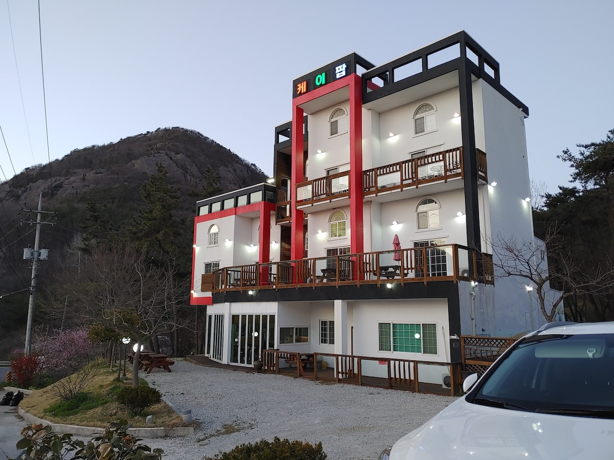 1. Standard 4 personnes, 10 personnes maximum (20 000 KRW par personne de plus de 3 ans) 2. 2 chambres, 3 lits, 2 salles de bain 3. Jacuzzi (mini-piscine) Fonctionne de mai à septembre/10 000 KRW pour 1 fois de l'eau froide (Cependant, eau froide gratuite en haute saison juillet-août), (Non) 30 000 KRW pour l'eau chaude/Pas d'utilisation d'agent de bain Jacuzzi/Réservez un jour à l'avance 4. Internet sans fil et place de parking gratuite (5 voitures ou plus) 5. Induction. Purificateur d'eau. Micro-ondes.Réfrigérateur. Télévision. Bidet. Shampoing.Après-shampoing, gel douche, dentifrice fournis 6. Soirée barbecue à la pension privée émotionnelle et à la terrasse avec le lac et le jardin devant vous (frais supplémentaires de 30 000 KRW) 7. Responsabilité du voyageur en cas de dommage ou de perte des installations de retraite 8. Les voyageurs sont responsables de tous les accidents de sécurité en cas de jacuzzi et de perte d'objets de valeur. 9. Pas de chiens, etc., si vous ne respectez pas le nombre de personnes admises, vous serez expulsé, et la vidéosurveillance à l'entrée du parking est opérée. 10. Ranger la vaisselle, la literie, etc. que vous avez utilisés lors du départ 11. Respect des heures d'arrivée et de départ 12. Pas de bois de chauffage personnel, etc.