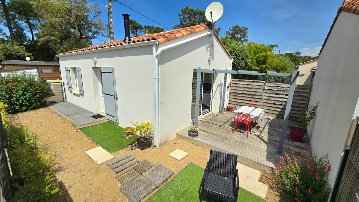 Ce logement paisible offre un séjour détente pour toute la famille ou entre amis. Charmante maisonette de 40m2 idéalement située à 50m de la plage surveillée de Boisvinet, accès à la plage par chemin piétonnier. A 10mn à pieds du port et des commerces Forêt domaniale à 100 mètres, idéal pour les amoureux de la nature et ballades côtières. Parking privé sécurisé Terrasse de 28 m2 entourée de haie avec salon de jardin Spot de planche à voile à proximité, et activités nautiques au port