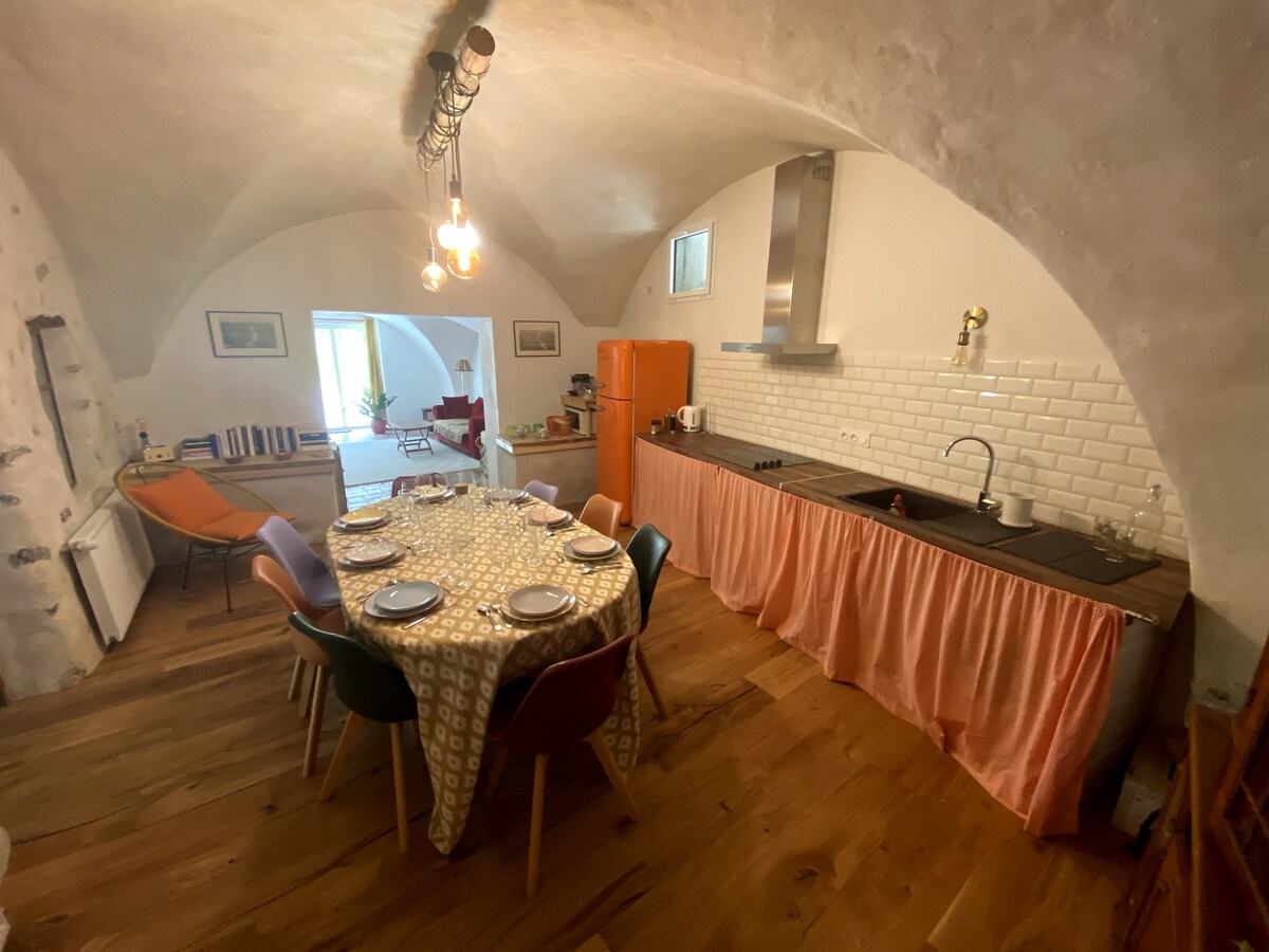 Notre petite maison est d'une fraîcheur incomparable, une vraie clime naturelle l'été, et très cocoon l'hiver avec sa cheminée électrique , 1 cuisine équipée, 1 chambre avec 1 lit double et 1 lit simple, 1 salon avec 1 canapé convertible 2 places fraichement changé car l'ancien etant trop petit pour vous acceuillir au mieux , 1 salle de bains, terrasse privée avec vue sur les montagnes , buanderie avec lave-linge et sèche-linge. Au plaisir de vous recevoir !!