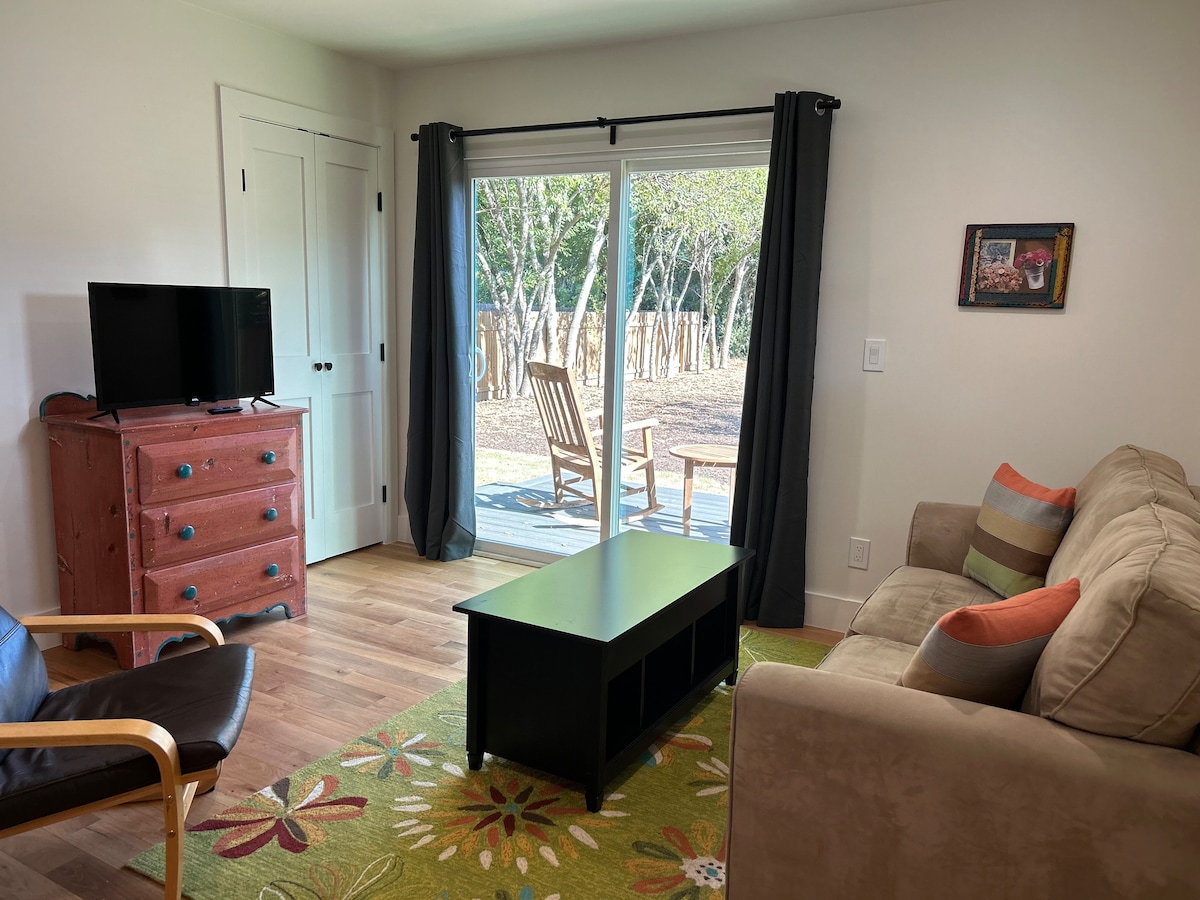 Les hôtes Jen et Stan Mauldin offrent un beau séjour dans le Cotton Gin Cottage, un atelier des années 1940 rénové situé à quelques pas de l'historique Georgetown Square et de la Southwestern University. Le chalet est situé sur un terrain calme entouré de beaux jardins et de pacaniers. Accès rapide à Austin, Round Rock et Salado ainsi qu'à d'excellents restaurants et bars à Georgetown. Aucune interface pour l'arrivée/le départ ; code clé fourni après la réservation. Séjour minimum de deux nuits et adapté aux personnes handicapées.
