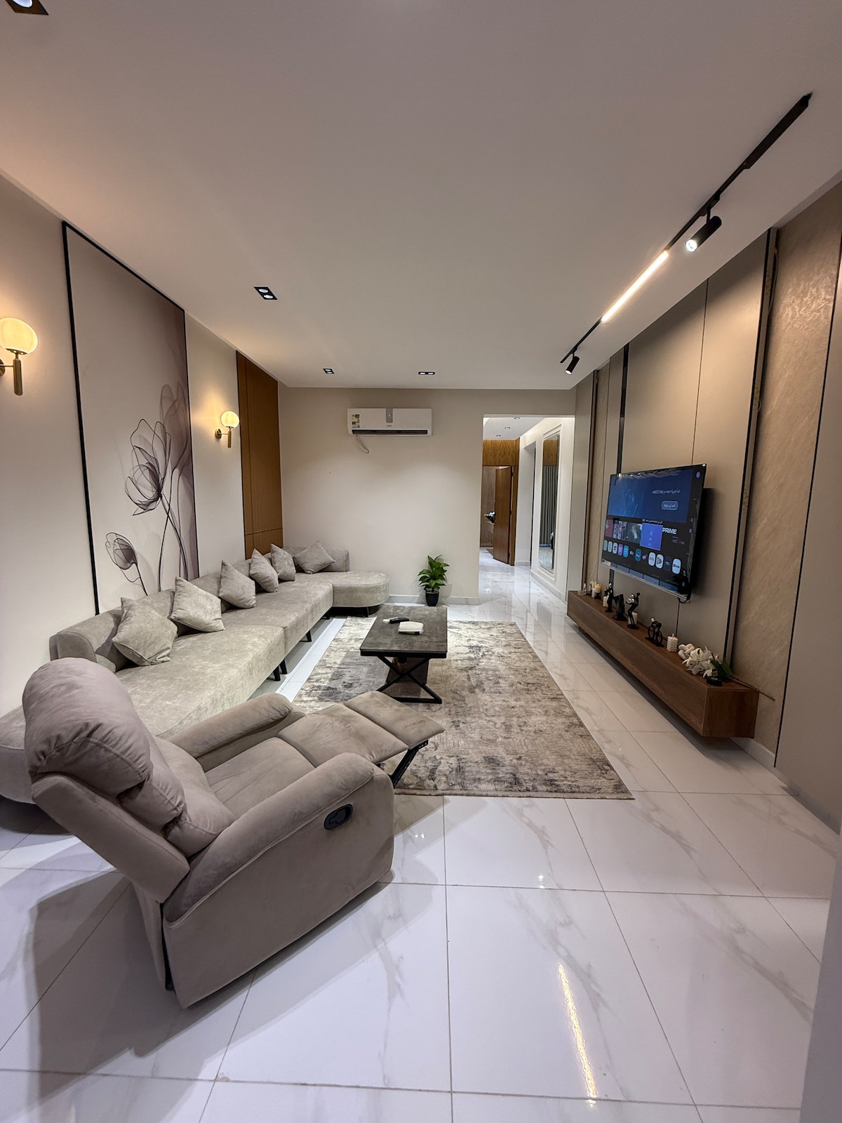 Bienvenue chez Marfull – Hébergement élégant et moderne au cœur de Jazan, idéal pour les voyageurs à la recherche d'intimité et de confort. Caractéristiques de l'appartement : • Chambre confortable • Salon à la décoration moderne et télévision connectée • Toilettes propres • Minibar, bouilloire, machine à expresso • Climatisation centrale + Wi-Fi. Un emplacement spécial à proximité de : • Centre commercial Al Rashed : 2 minutes • Cady Mall : 3 minutes • Centre-ville : 5 minutes • Université de Jazan : 10 minutes • Aéroport régional de Jazan : 15 minutes • Corniche de Jazan Nord : 10 minutes Intimité et confort avec une arrivée autonome flexible à tout moment après 15h.