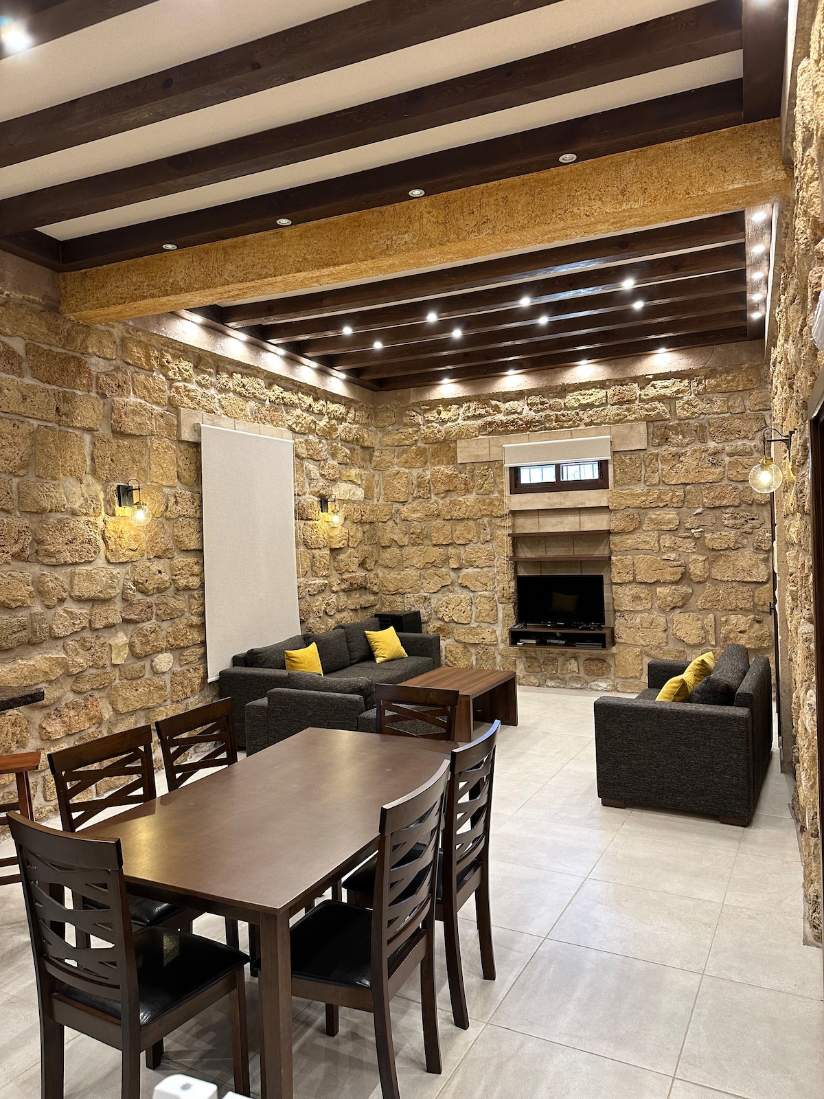 Entrez dans un monde de détente avec Guesthouse Farah à Beit Mema, un appartement entièrement fonctionnel conçu pour répondre à tous vos besoins. Dotée de deux chambres pouvant accueillir jusqu'à quatre voyageurs, Guesthouse Farah est équipée de toutes les commodités modernes pour un séjour en toute simplicité. Installez-vous confortablement près de la cheminée ou détendez-vous dans le salon spacieux. Vous pourrez également profiter de notre grand espace extérieur qui comprend une piscine, un brasero, des hamacs, du tennis de table et plus encore. La maison d'hôtes Farah promet une expérience loin de la maison !