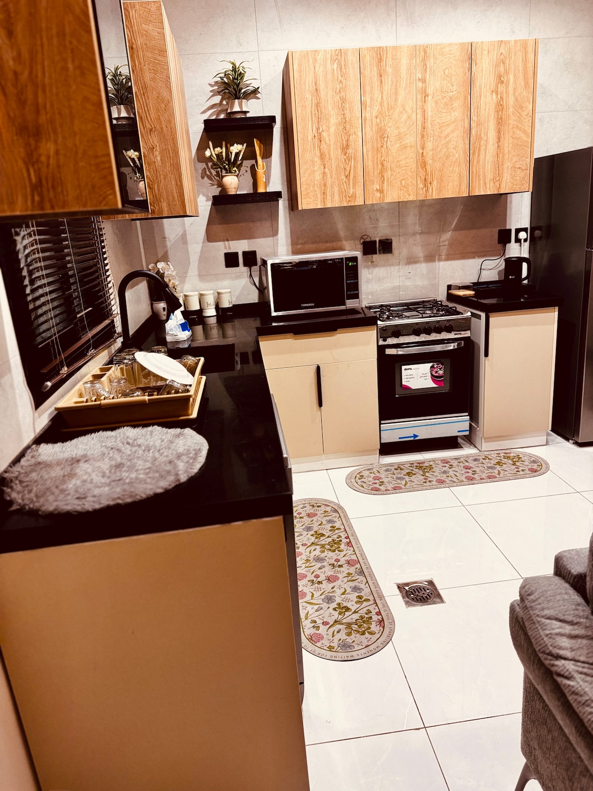 🌿 Appartement de luxe à East Jeddah 🌿 Profitez d'un séjour confortable dans un appartement au design moderne aux couleurs claires qui inspirent le calme et le confort, situé dans un emplacement privilégié à l'est de Djeddah, près du centre commercial Jasmine et de l'aéroport international King Abdulaziz, donnant sur un magnifique petit jardin devant la propriété. Spécifications de l'appartement : • 🛋️ Mobilier moderne, élégant et confortable • 📺 Écran 50 pouces avec abonnement à toutes les chaînes • 🏠 Espace spacieux qui offre confort et intimité • 🔐 Entrée intelligente sans clé Emplacement : 📍 Est de Djeddah – proche des services, restaurants et cafés, et adapté aux familles et aux voyageurs.