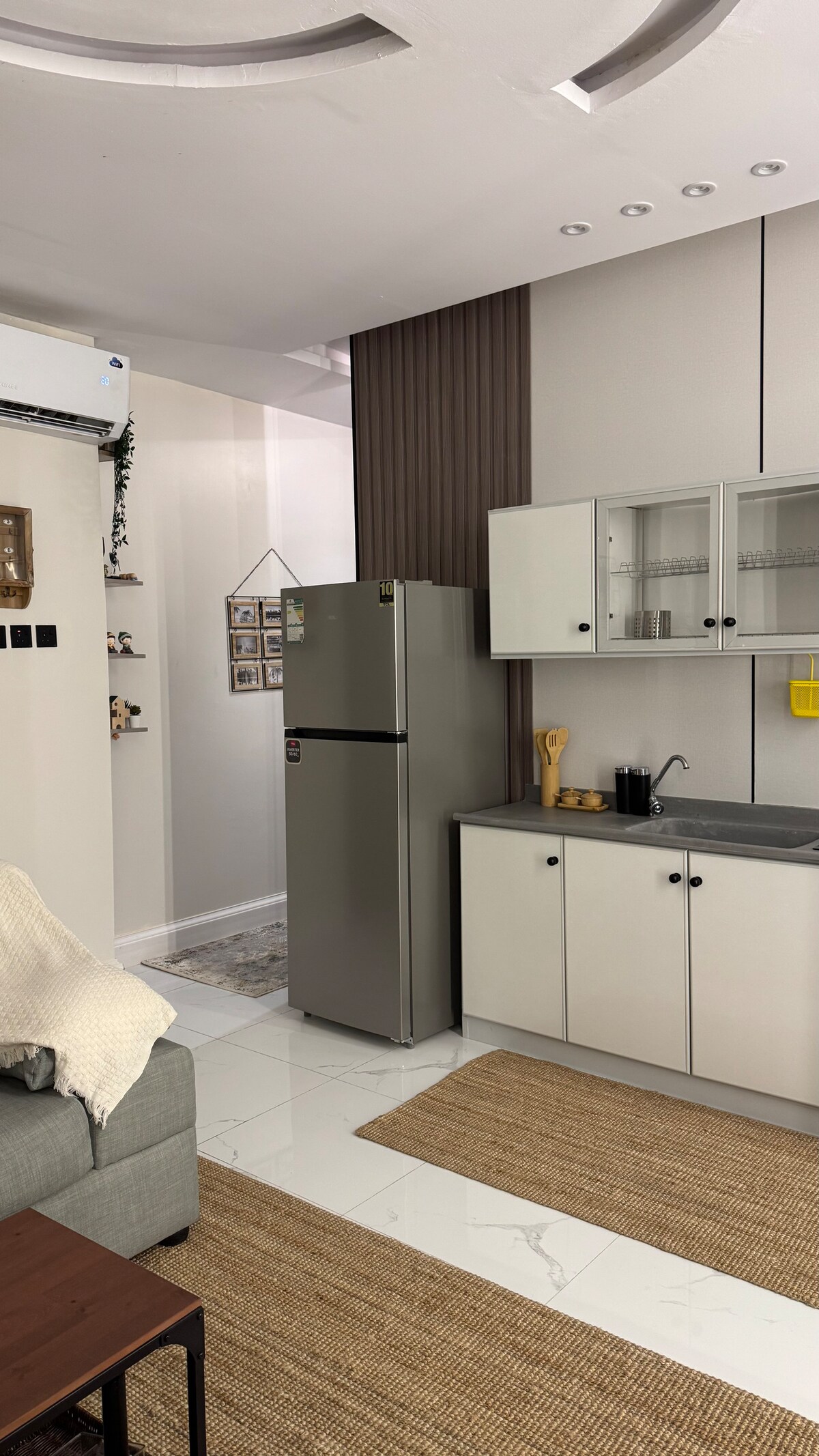 Un appartement moderne élégant avec deux chambres, un hall spacieux, une cuisine entièrement équipée et une buanderie complète pour le confort des voyageurs. Il dispose d'une atmosphère calme et sophistiquée avec un écran de 75 pouces qui vous offre une expérience de divertissement exceptionnelle, et un design qui garantit l'intimité et le confort. Emplacement : Situé sur King Abdulaziz Road au cœur de Djeddah, Et c'est à une minute de la salle de sport. À 5 minutes du centre commercial Raddisi À 7 minutes du front de mer À 10 minutes du centre commercial Arab Mall À 12 minutes de l'aéroport international Roi Abdulaziz