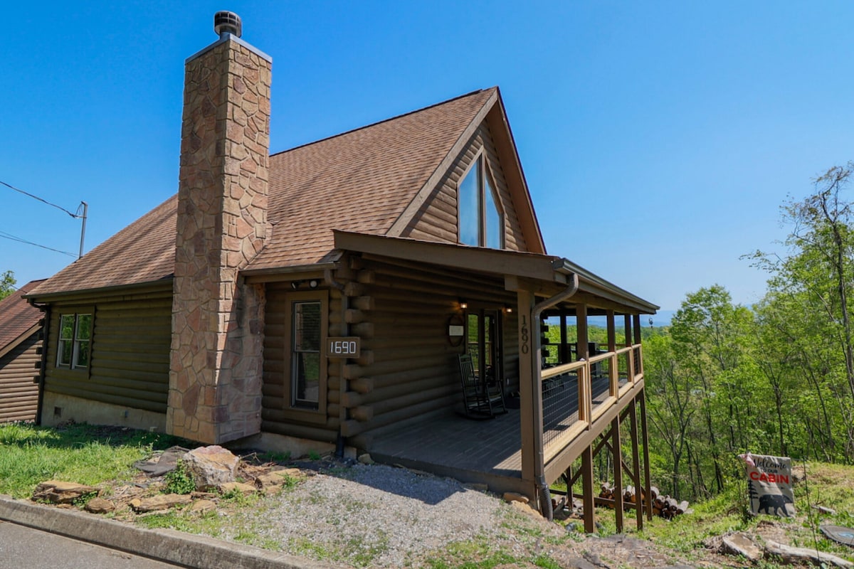 🌟 Grandview Lodge : cabane rustique avec vue sur le lac près de Pigeon Forge, Gatlinburg et les Smoky Mountains. 2 chambres/3 salles de bain avec cheminée en pierre confortable, salle de jeux et bar, table de billard et cuisine entièrement équipée. Profitez des porches enveloppants, du jacuzzi, du foyer, du barbecue et de la vue imprenable sur le lac et la montagne. Parfait pour les familles, les couples et les amis : près de Dollywood, randonnée, dîner et divertissement ! 🏡🔥🌄