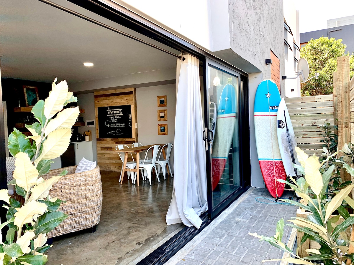 Un studio spacieux, ouvert, de style loft, pouvant accueillir 2 personnes. Parfait pour un couple ou un voyageur seul. Paisiblement en retrait de la route principale et à distance de marche de la plage, c'est l'emplacement idéal pour une escapade, une mission de surf ou un séjour d'affaires. Entrée séparée sur un patio avec vue directe sur Lowerpoint. Savourez des levers de soleil spectaculaires tout en dégustant une tasse de thé du matin ou profitez d'un braai sur le patio avec des cocktails en soirée tout en observant les vagues et les dauphins.