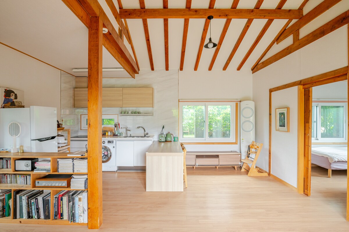 * À vérifier avant de réserver - Nombre de personnes de base : 1 à 5 personnes → Seulement le bâtiment principal est disponible (2 chambres + 2 salles de bain) - Ouverture supplémentaire d'une → annexe (salle de bain incluse) lors de la réservation pour 6 personnes ou plus -Si vous souhaitez utiliser la maison annexe, veuillez réserver pour 6 personnes ou plus. ※ Pour un fonctionnement sans problème, veuillez respecter le nombre de personnes standard. Avec le motif architectural de « fusion avec la nature », il a été conçu en forme de cercle pour échapper au cadre standard. Et pour ressentir la tranquillité du monde en s'asseyant confortablement, la plupart des espaces ont été décorés avec du sol. La famille de Rasson a participé au processus de conception pour vivre C'est une maison construite avec soin. Au cours des dernières années, c'était un moment où je ne pouvais ressentir que la nature de Jeju. Je veux maintenant partager le confort et la beauté que Jeju offre. Restez confortablement. {Lassong}