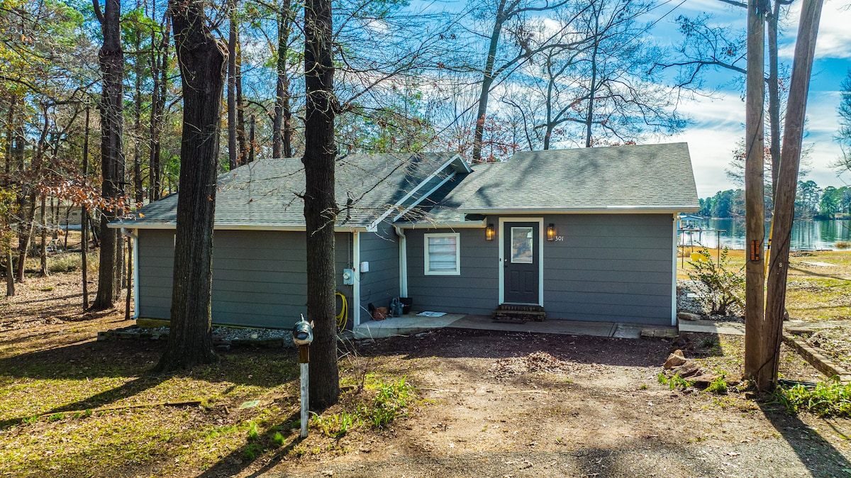 Bienvenue dans notre maison confortable sur le lac o’ the Pines ! Profitez de couchers de soleil à couper le souffle et possibilités de pêche. Profitez de l'observation de nombreux chevreuils et pygargues à tête blanche. Notre maison dispose d'une immense terrasse face au lac, ce qui est parfait pour se détendre. La maison rénovée dispose de nouveaux meubles et appareils électroménagers, de lits en mousse à mémoire de forme, d'une cuisine complète et d'un bar à café pour votre plus grand confort. Faites griller de délicieux plats sur le barbecue à gaz et rassemblez-vous autour du foyer à gaz pour une soirée confortable ou visitez le Jefferson TX historique. Nous vous souhaitons un excellent séjour !