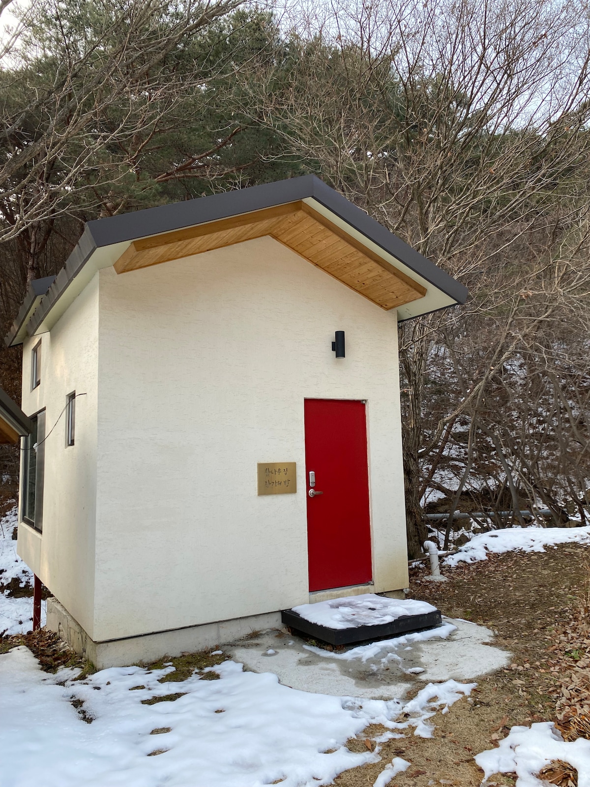 Contactez-nous à @hug_writers_studio C'est une petite maison dans la forêt entourée de chênes. Laissez vos soucis complexes derrière vous et passez une journée chaleureuse à écouter le bruit des oiseaux et de l'eau tout en regardant la forêt. *À l'origine, c'était l'espace de studio personnel de l'artiste. Je l'ai mis aussi bas que possible ! Veuillez garder cela à l'esprit ! * Convient à ceux qui veulent se rafraîchir les cheveux tranquillement. * Arrivée : 16h00 Départ : 11h00 * Cuisine non autorisée * Il y a un mini-réfrigérateur, vous devez acheter de l'eau. * Veuillez apporter des produits de lavage ! * Le chauffage au sol et le chauffage sont disponibles ! * L'eau chaude est fournie par un chauffe-eau instantané. Si vous vous lavez pendant une longue période, il est recommandé de vous laver avec une pause de 15 minutes après une douche. * Comme il est au cœur des montagnes, des insectes peuvent entrer. Merci de votre compréhension !