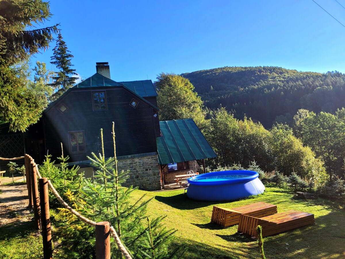 Notre maison traditionnelle en bois est située dans la vallée des montagnes de Jeseniky et offre une vue pittoresque sur ses sommets enneigés. Dans le quartier se trouvent les pistes de ski, les sentiers de fond et d'autres centres sportifs d'hiver/été. En été, au printemps et en automne, les voyageurs peuvent combiner randonnée pédestre, vélo et baignade dans l'eau pure de carrières de granit inondées. Trouvez votre logement idéal pour vos vacances en famille et amenez vos animaux de compagnie pour vous rejoindre :)