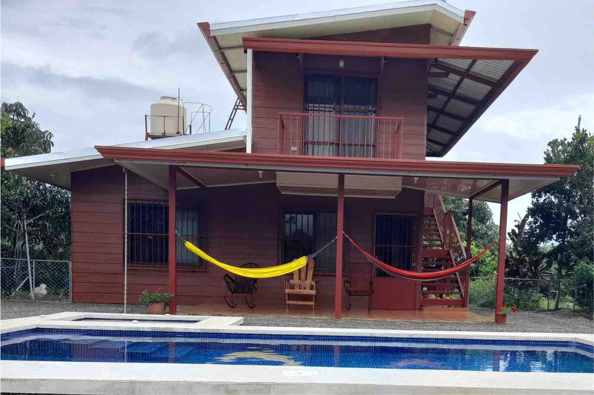 Casa completa, segura y privada con amplios espacios: Piscina Parqueo Jardín y vistas espectaculares Rodeada de flora y fauna, perfecta para relajarte y conectar con la naturaleza. Disfruta del fire pit bajo las estrellas. Pet friendly y con capacidad para hasta 12 personas. A solo 6 minutos del centro de Esparza (tiendas, supermercados, farmacias) y 20 min de playa Caldera, a 1 hora /30 minutos de Monteverde y aeropuerto Int. Juan Santa María. ¡Tu refugio ideal entre el mar y la montaña!