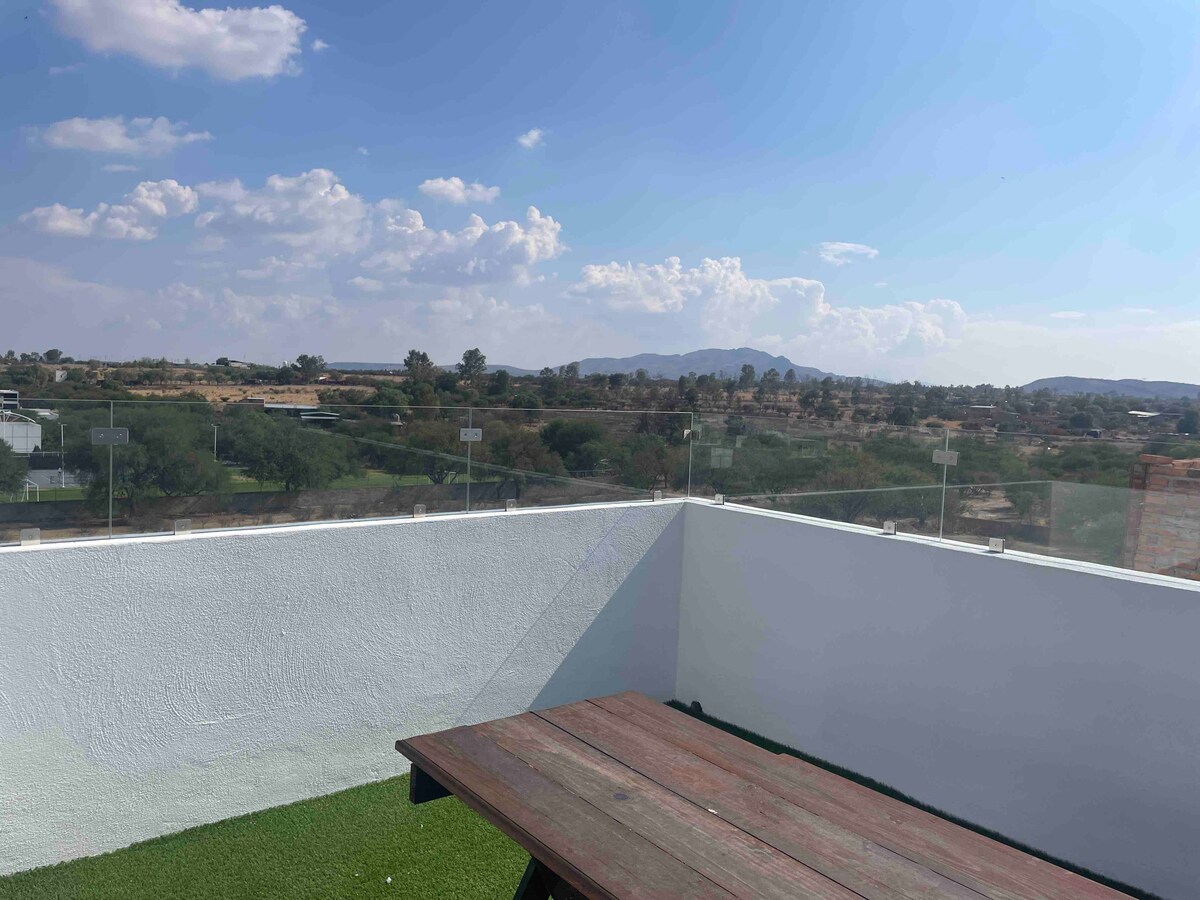Venez découvrir et profiter de la belle ville d'Aguascalientes avec nous. L'appartement est dans un excellent emplacement, dans l'une des zones les plus calmes d'Aguascalientes. Appartement avec trois chambres très spacieuses, confortable et central. Il dispose d'une cuisine équipée, d'une salle à manger, d'une terrasse commune et d'une cour de buanderie. Une excellente option d'hébergement ! Nous avons un parking à l'intérieur de l'établissement 🅿️