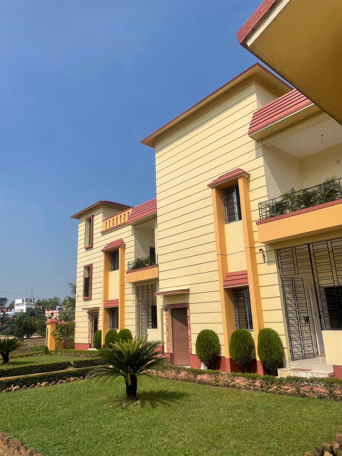 Distances des sites📍 emblématiques depuis la propriété 1,4 km – Temple 🌄 Maa Mangla Gauri 3 km – Temple de 🛕 Vishnupad 6,5 km – Gare ferroviaire de 🚉 Gaya Junction 10 km - Aéroport international de ✈️ Gaya 10 km – Temple 🕉️ Mahabodhi, Bodh Gaya Logement complet à disposition, prêt à l'emploi avec tous les éléments essentiels pour un séjour plus long. 3 chambres spacieuses avec salles de bains attenantes, équipées de climatisation, geyser et chauffage. Parfait pour les grandes familles et les groupes, peut accueillir confortablement jusqu'à 15 personnes moyennant des frais supplémentaires.